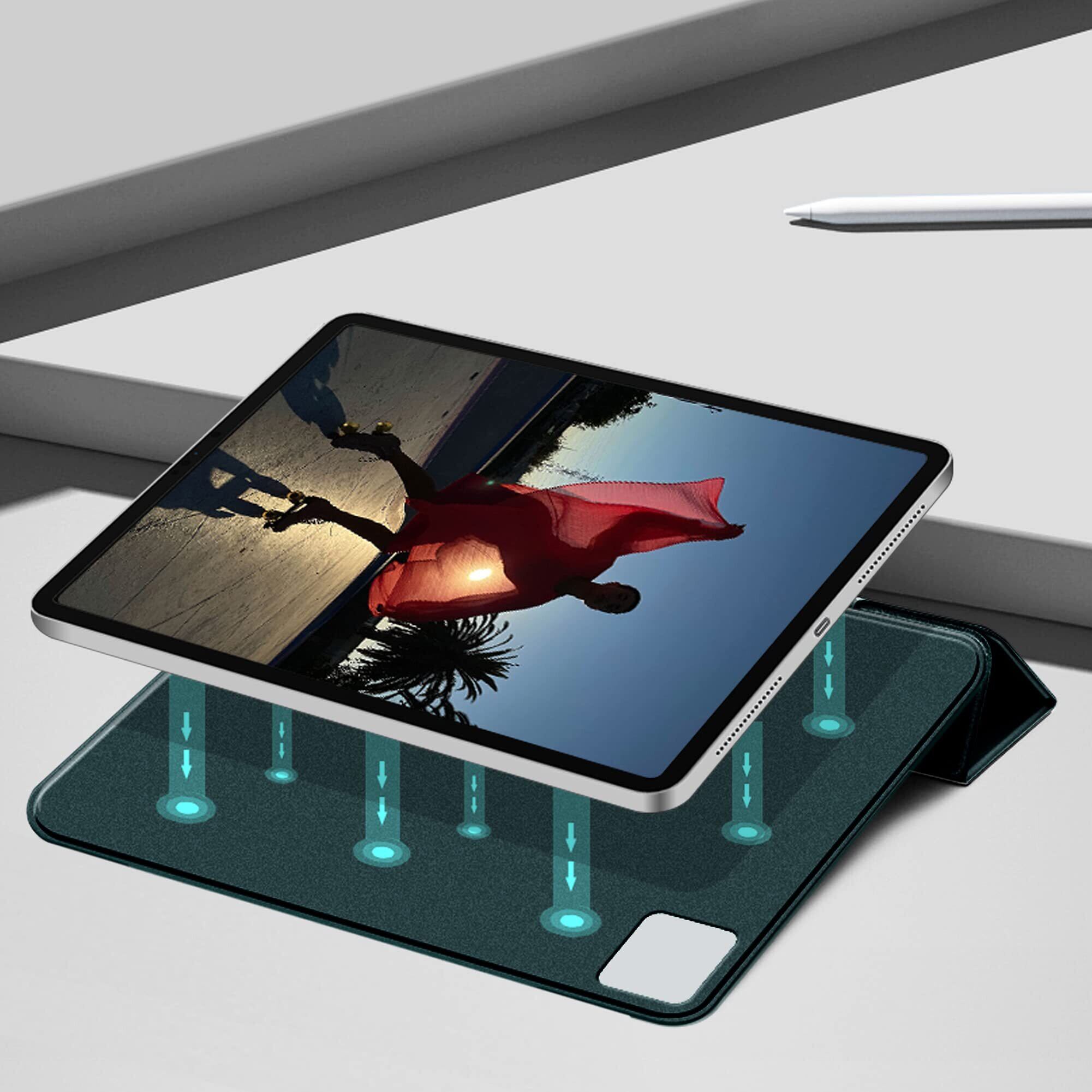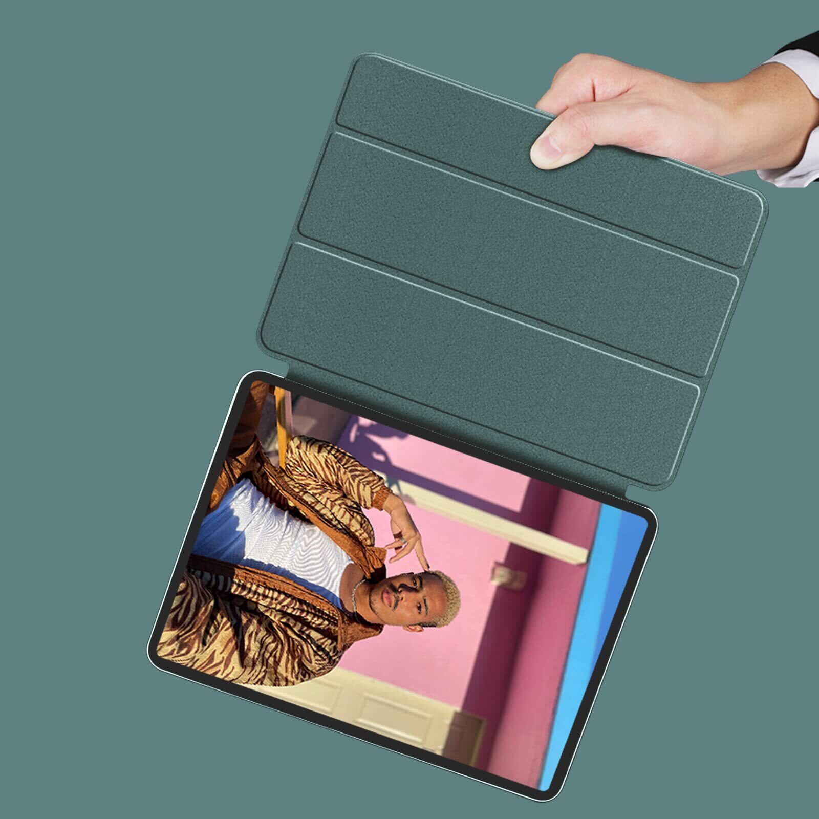 KenKe 新型 iPad Pro 11 ケース 第4/3/2/1世代 通用 磁気吸着 軽量 柔らかいシリコン 高級PU材質 カバー Pencil 2 ワイヤレス充電可能 三つ折り畳み可 スタンド マグネット付き 自動スリープ機能 iPad Pro 11インチ 2022/2021/2020/2018 (ダークグリーン)