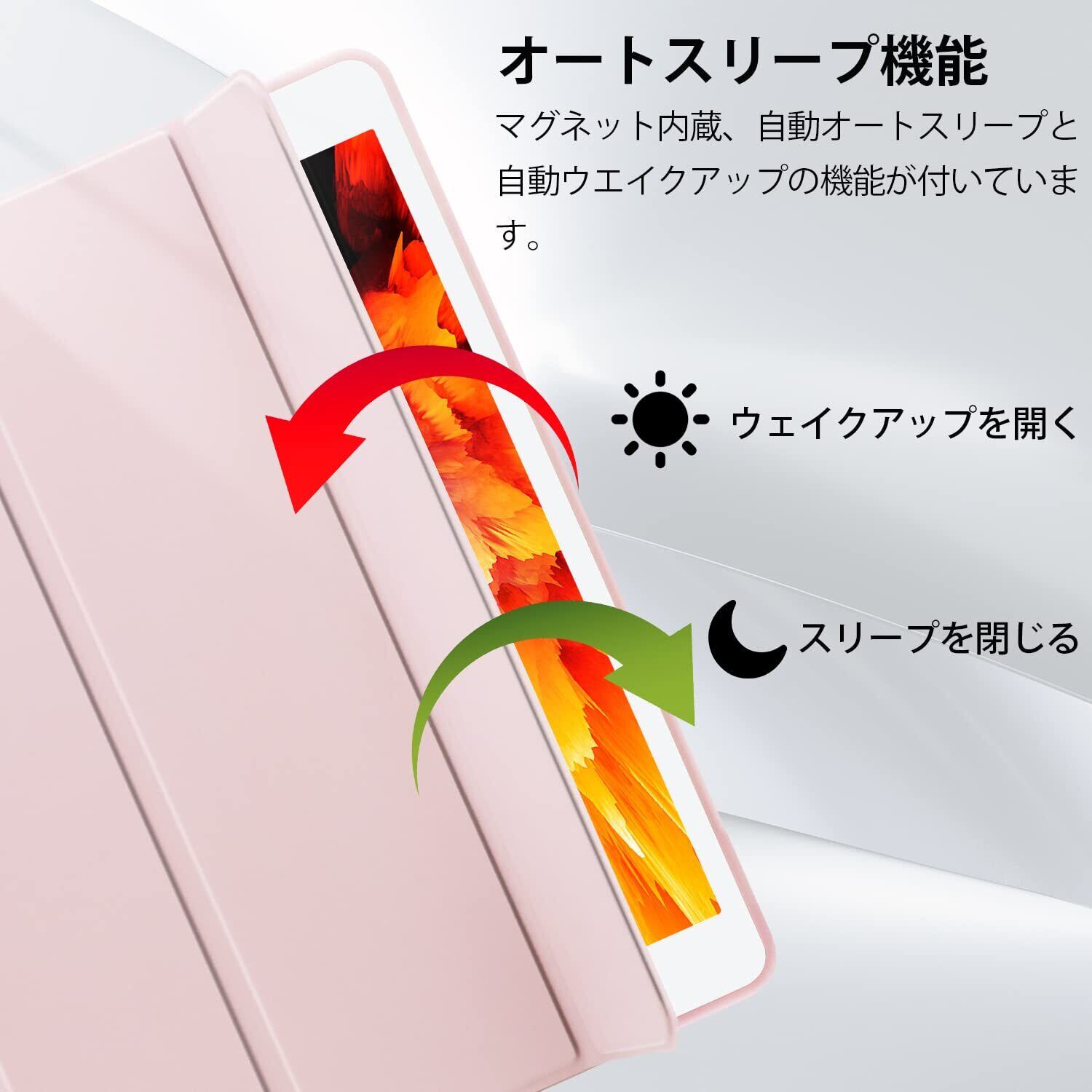 【在庫処分】Wonzir iPad 第9世代 ケース iPad 10.2 ケース (2021/2020/2019モデル) ペン収納 スタンド機能 iPad 10.2 インチ 保護カバー 軽量 薄型 シンプル 三つ折りスタンド 全面保護型 傷つけ防止 iPad 第8世代 手帳型 iPad 第7世代 便利なペンホルダー付き (ピンク, iPad 10.2)