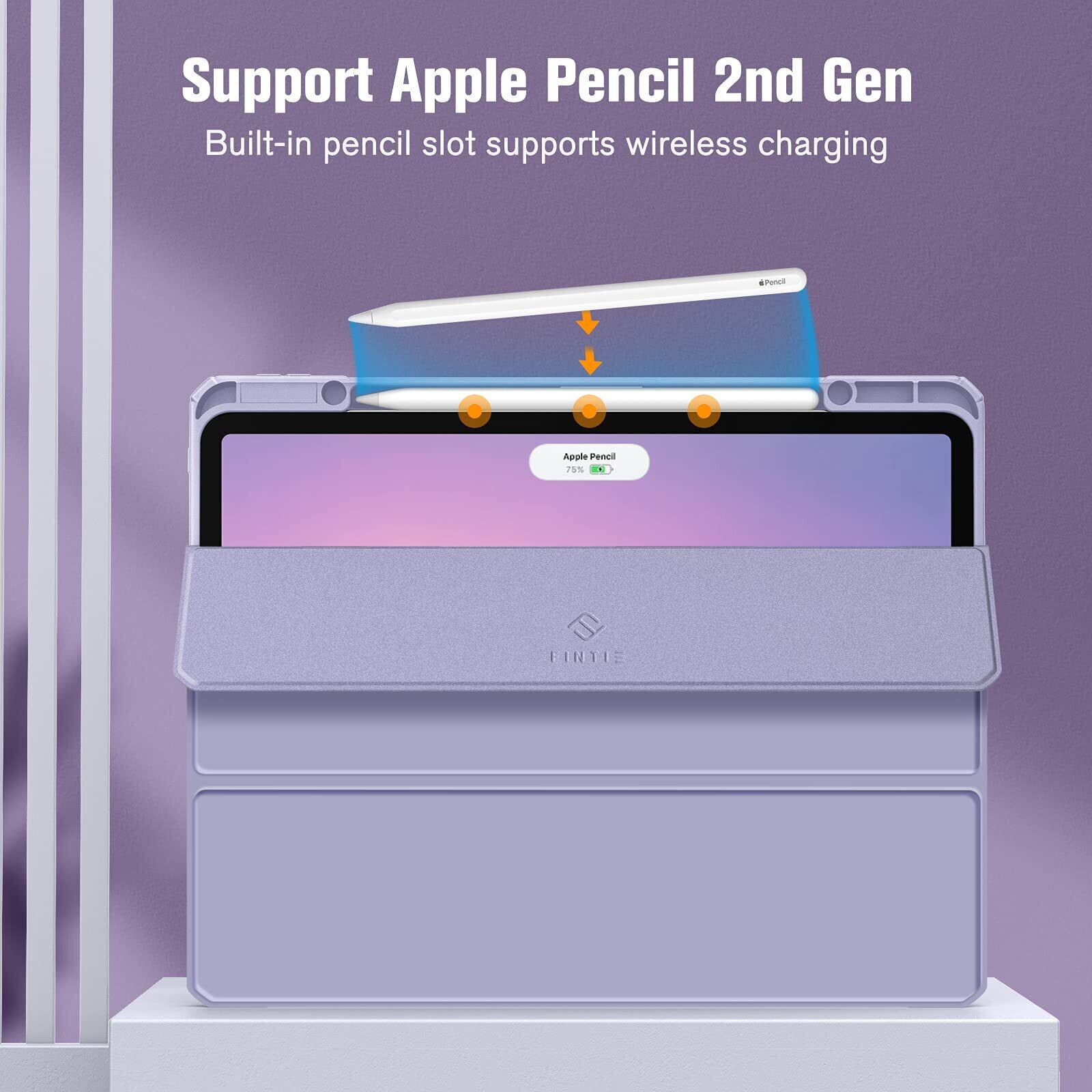 Fintie iPad Pro 12.9 ケース 2022/ 2021/ 2020/2018 12.9インチ 透明バックカバー Apple Pencil 収納可能 Apple Pencil 2 ワイヤレス充電対応 三つ折スタンド スリープ機能 軽量 薄型 傷つけ防止 PU合成レザー TPU (モデル番号A2378、A2461、A2379、A2462)( ライラックパープル)