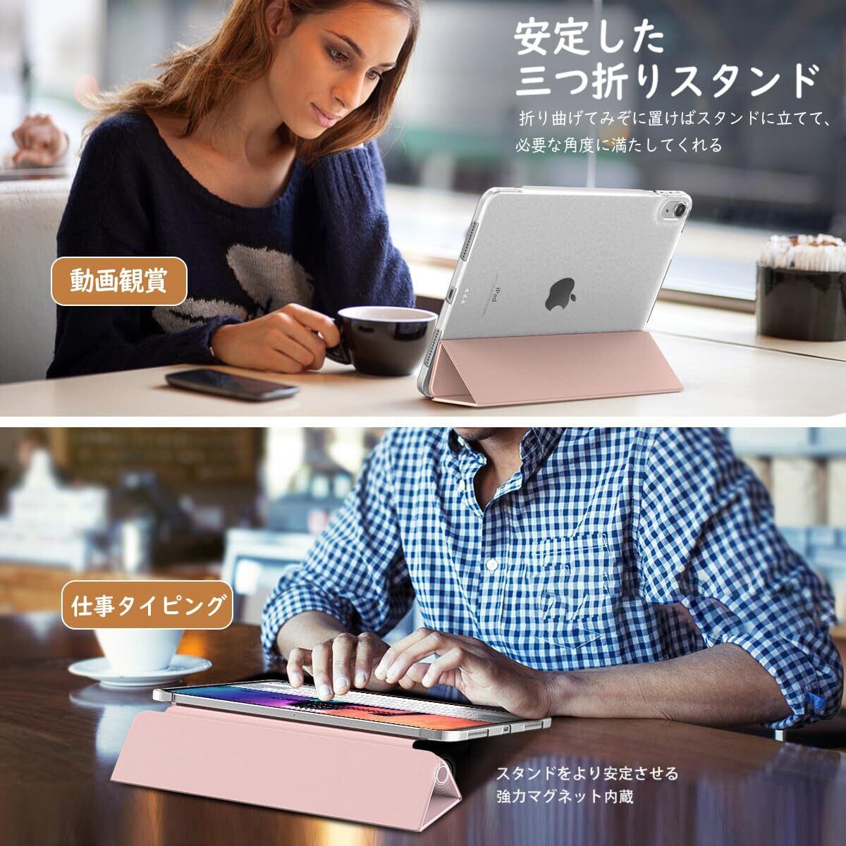 TiMOVOのiPad Air ケースは、あなたの大切なデバイスをスタイリッシュに保護する必需品です!ピンクゴールドの半透明デザインが美しく、iPad Airにぴったりフィットします。対応機種は、iPad Air(第7/6世代)、iPad Air4および5(10.9インチモデル)です。