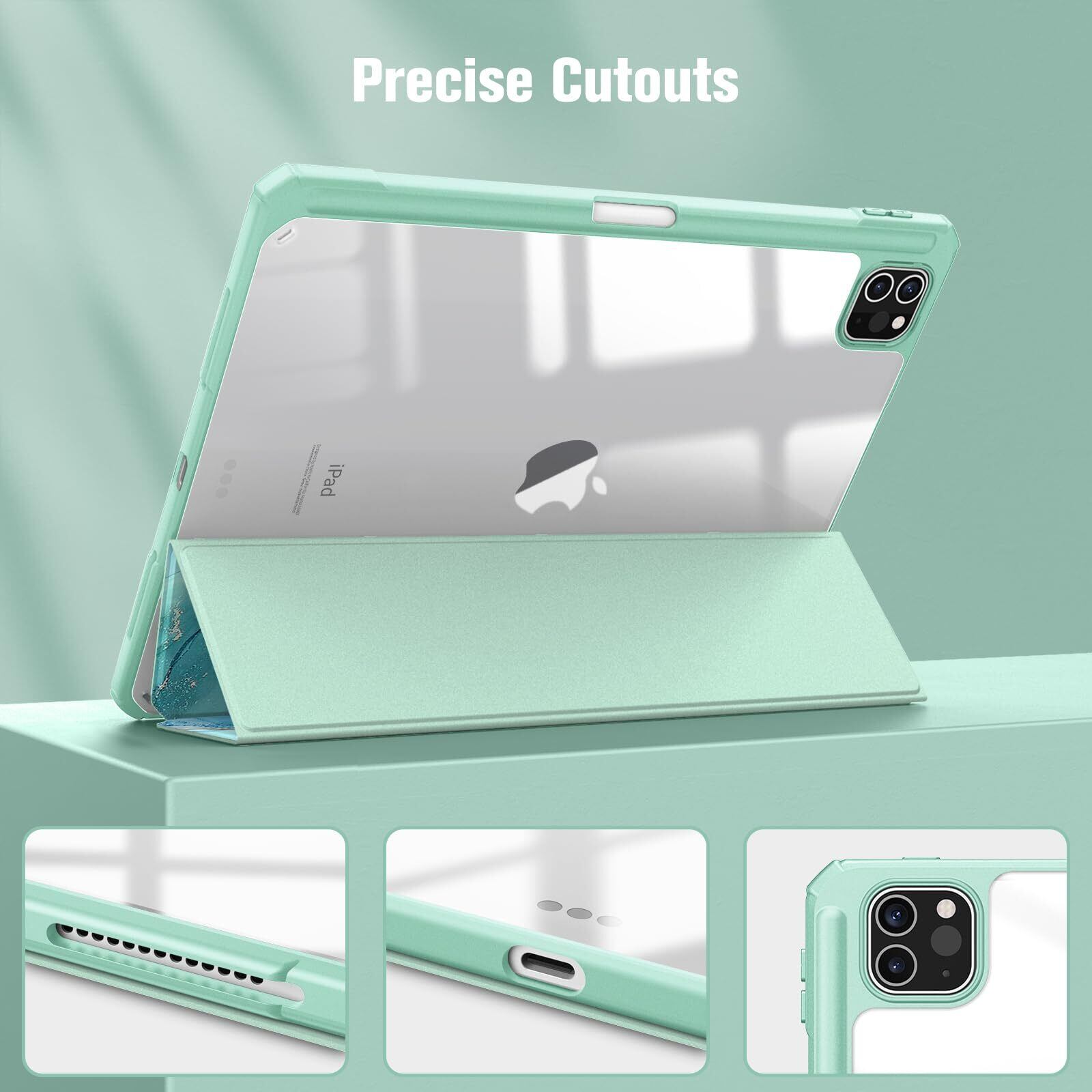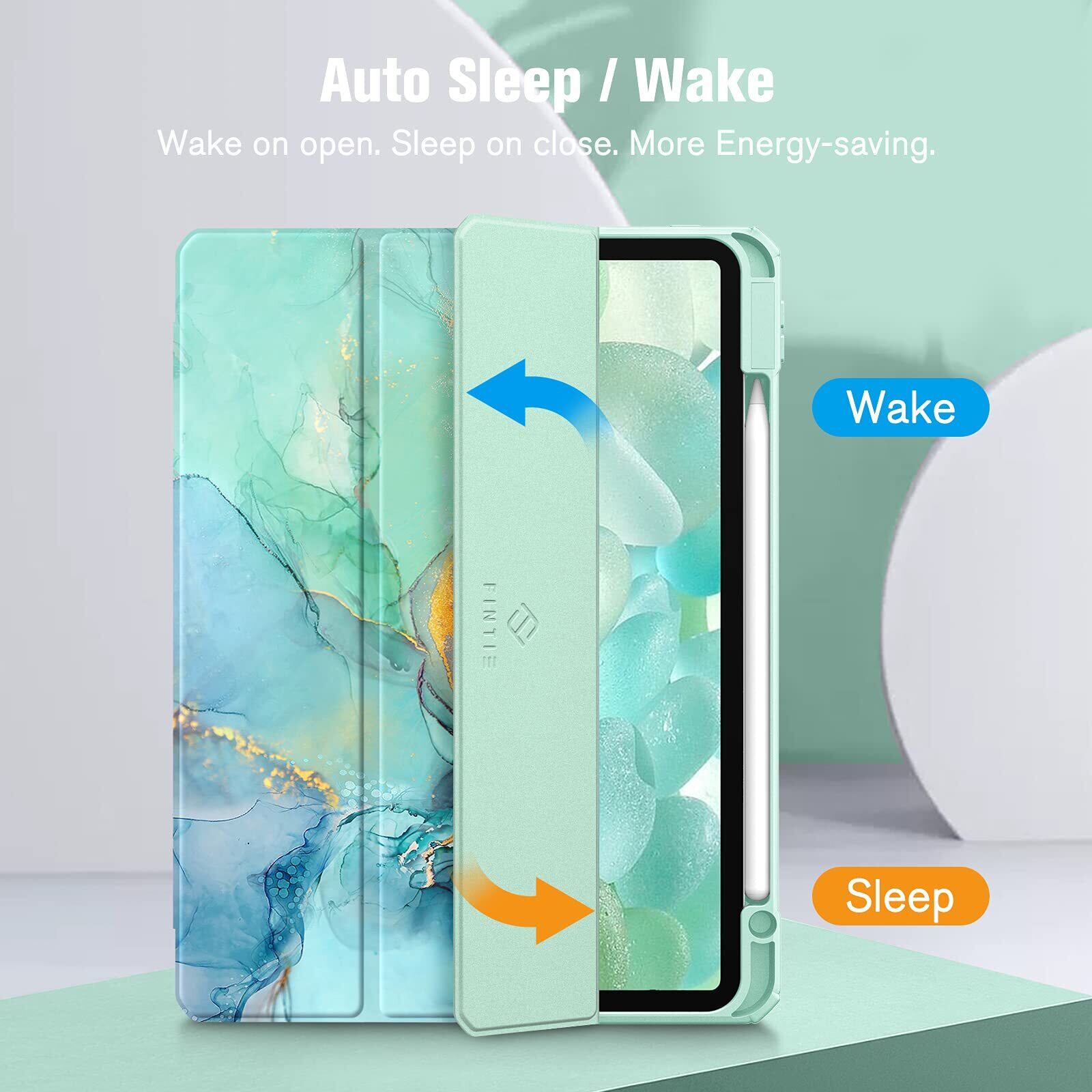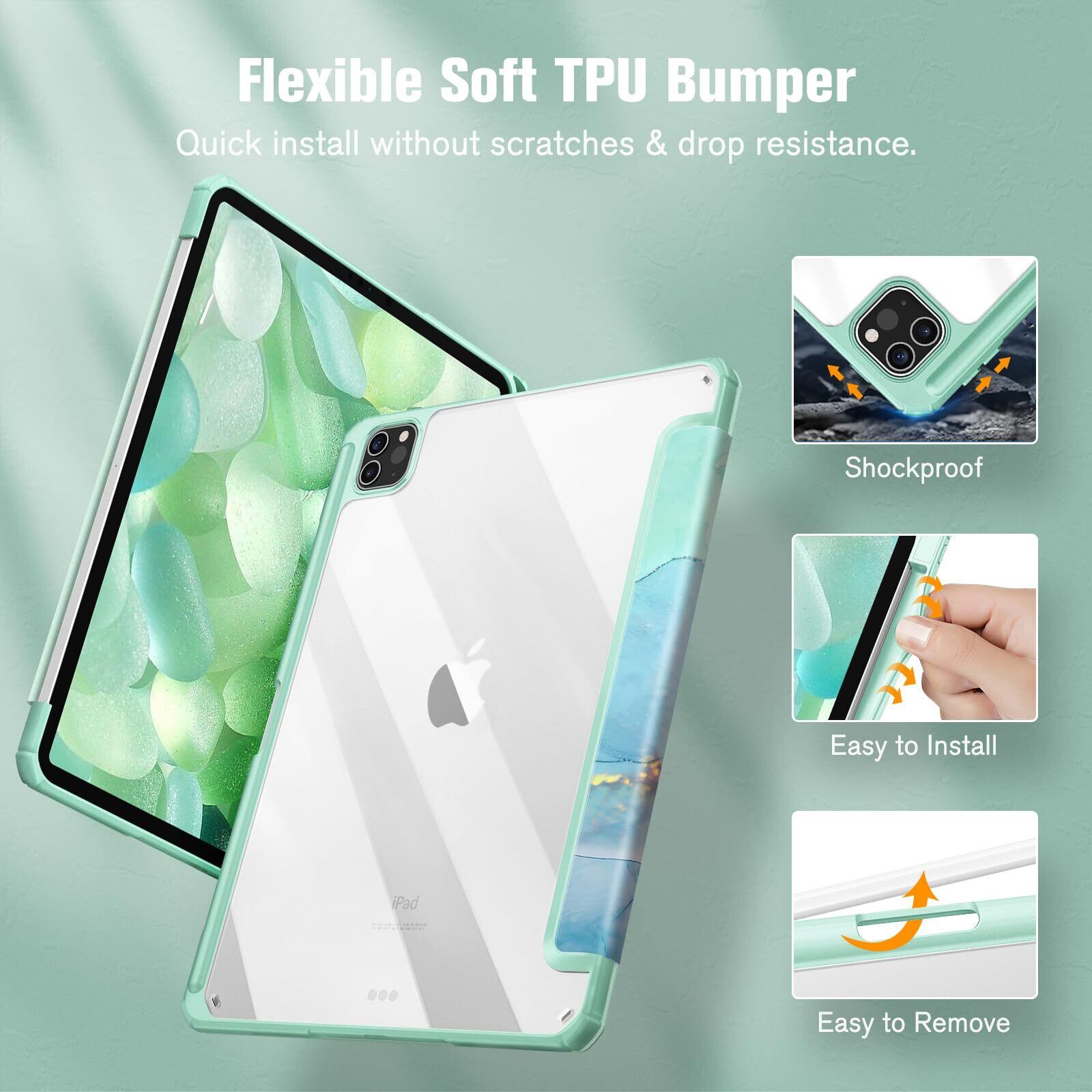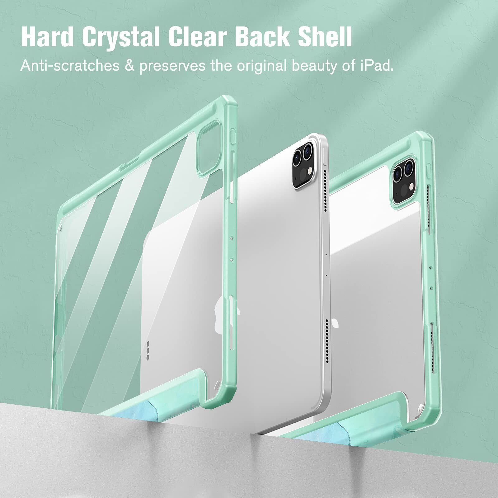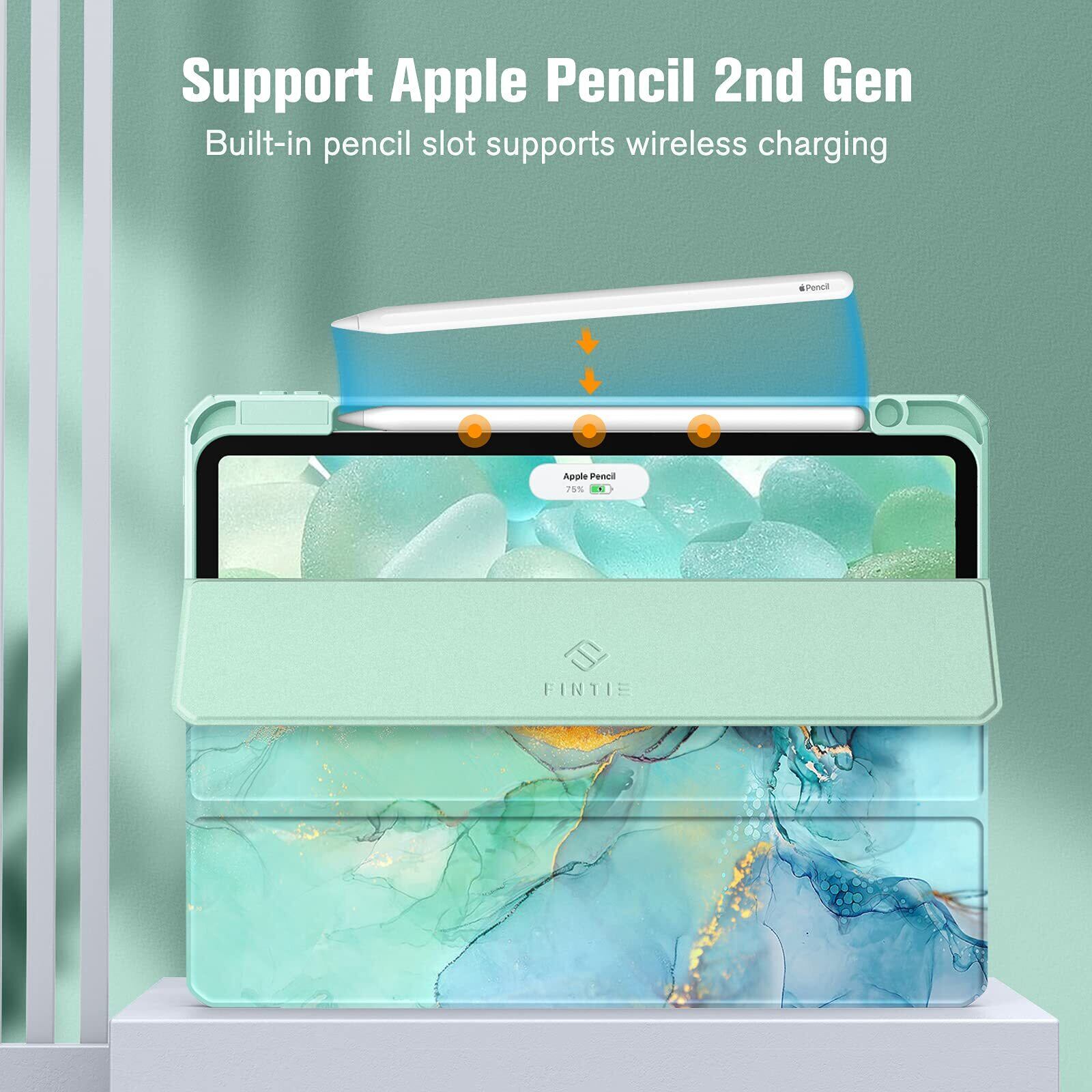 Fintie iPad Pro 11 ケース 2022/ 2021/ 2020/2018 11インチ 透明バックカバー Apple Pencil 収納可能 Apple Pencil 2 ワイヤレス充電対応 三つ折スタンド スリープ機能 軽量 薄型 傷つけ防止 PU合成レザー TPU (モデル番号A2435、A2759、A2761、A2762)(柄 X マーブルエメラルド)