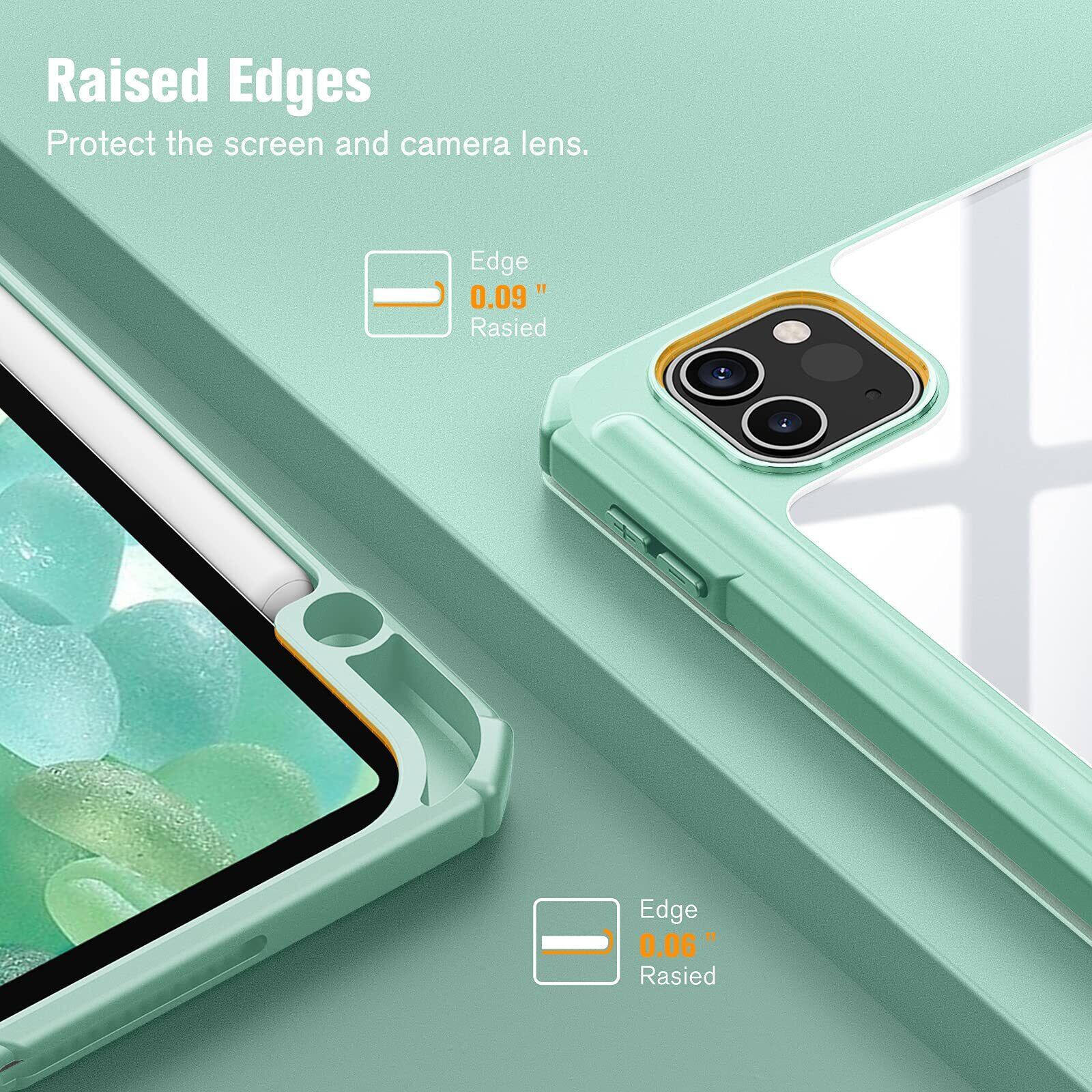 【材料・透明バックカバー】 ケースの表面はPUレザー素材を利用して、軽量、超薄を備えます。ポリカーボネート素材を採用している透明バックカバーは汚れや傷つけなどを防止するだけでなく、iPad本体の色と美しさも活かせます。透明バックカバーの枠は柔軟な TPUを採用して、取り付けも簡単にできます。フロントカバー内部材質はマイクロファイバーで、摩擦によって発生する傷を抑え、液晶画面を保護しきれいに保ちます。(ご注意:透明バックカバーには保護用のフィルムがついていますので、ご使用前に保護フィルムを剥がしてください。)