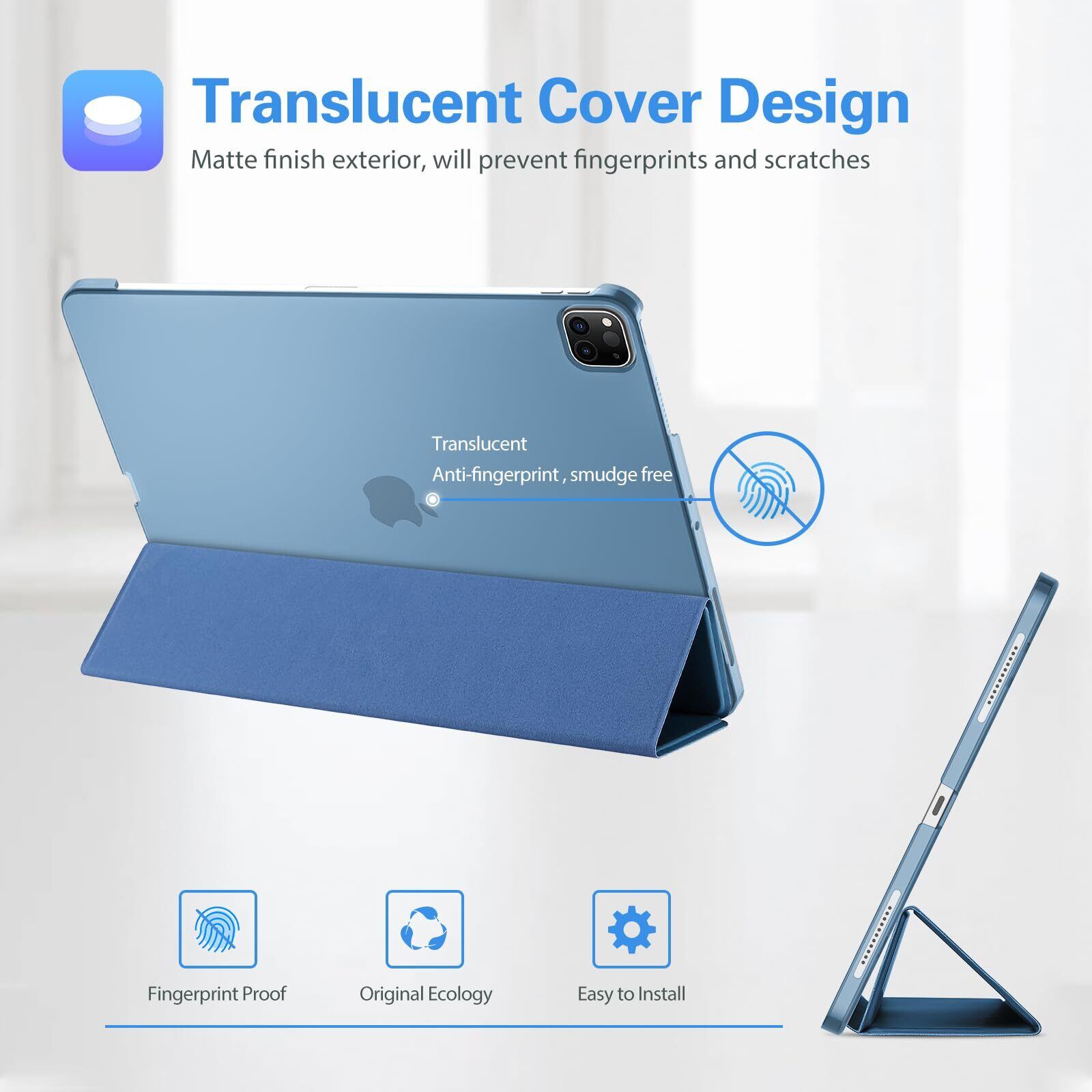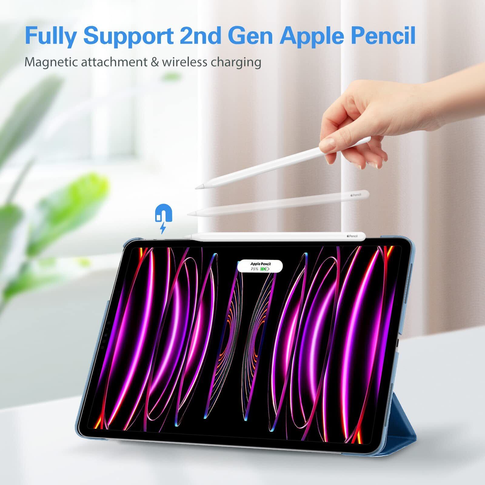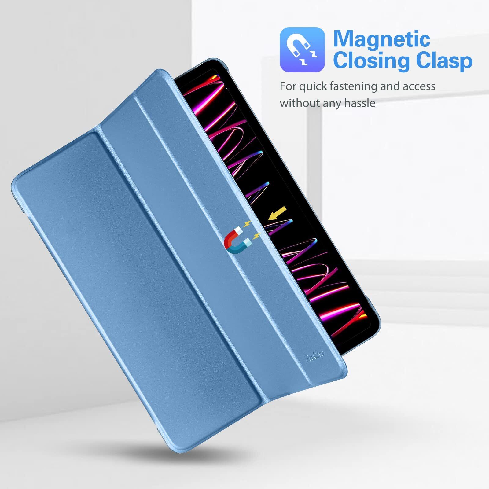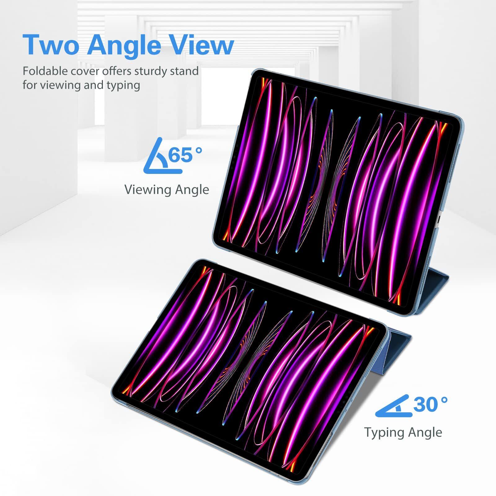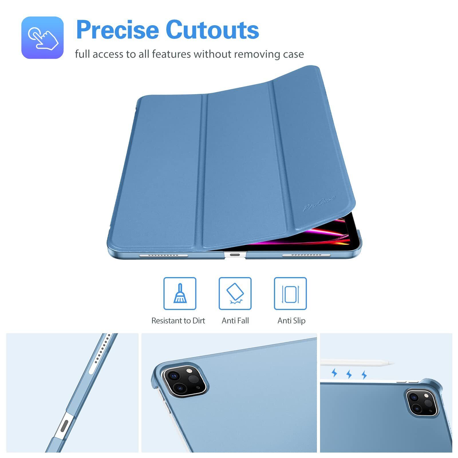 ProCase iPad Pro 12.9 ケース 第6/5/4/3世代に適用(2022 2021 2020 2018) スリム 三つ折り スタンド スマートカバー Pencilのペアリングと充電に対応 - ブルー