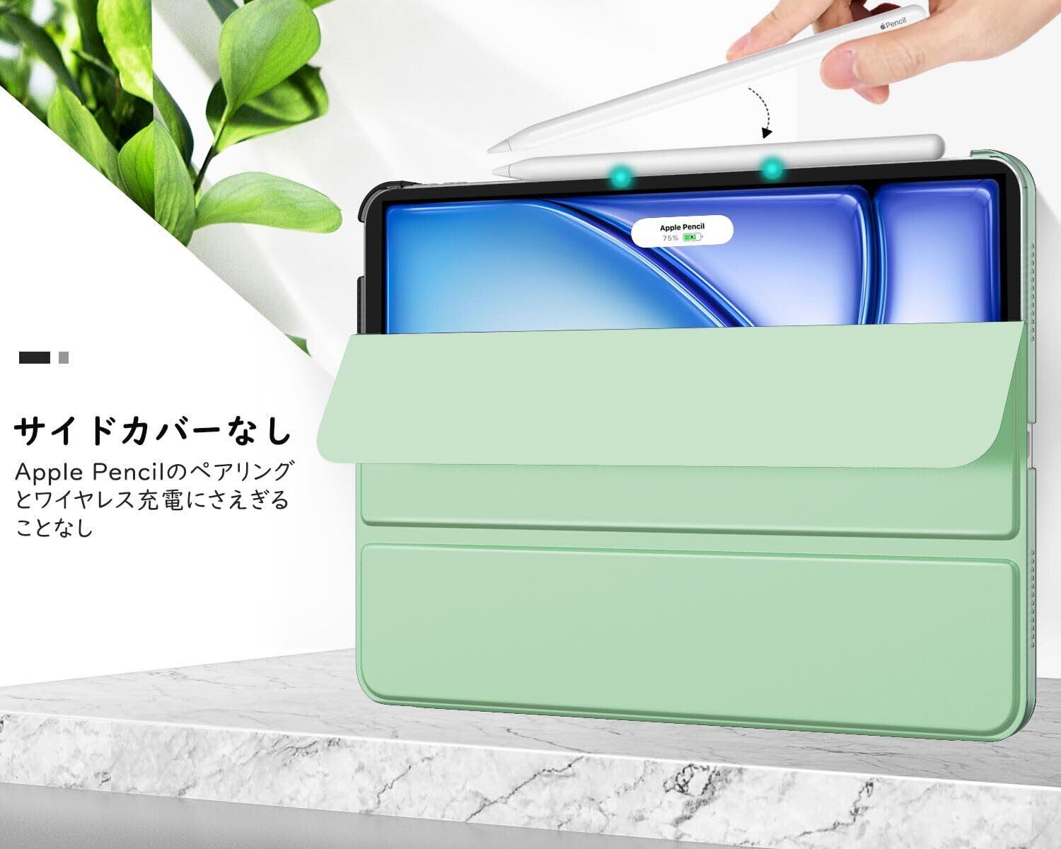 MoKo iPad Air 11インチ ケース(2025/2024)、iPad Air5/4 10.9インチ ケース iPad Air(M3/M2) 11インチ iPad Air第5/4世代 10.9 カバー 半透明 オートスリープ ApplePencilPro/第2世代ペアリング&充電対応 三折りスタンド PUレザー 裏地マイクロファイバー スマートケース グリーン