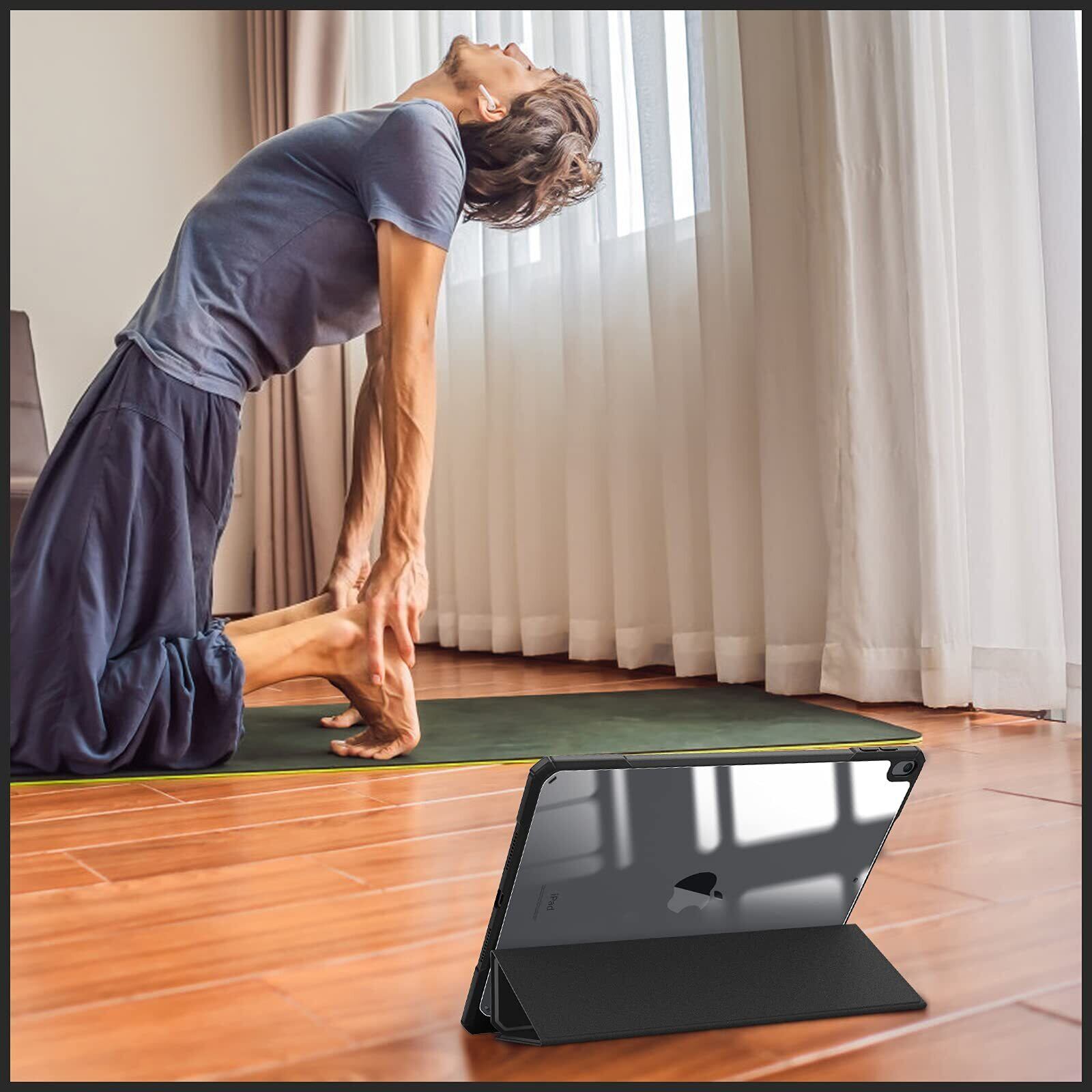 【材料・透明バックカバー】 ケースの表面はPUレザー素材を利用して、軽量、超薄を備えます。ポリカーボネート素材を採用している透明バックカバーは汚れや傷つけなどを防止するだけでなく、iPad本体の色と美しさも活かせます。透明バックカバーの枠は柔軟な TPUを採用して、取り付けも簡単にできます。フロントカバー内部材質はマイクロファイバーで、摩擦によって発生する傷を抑え、液晶画面を保護しきれいに保ちます。(ご注意:透明バックカバーには保護用のフィルムがついていますので、ご使用前に保護フィルムを剥がしてください。)