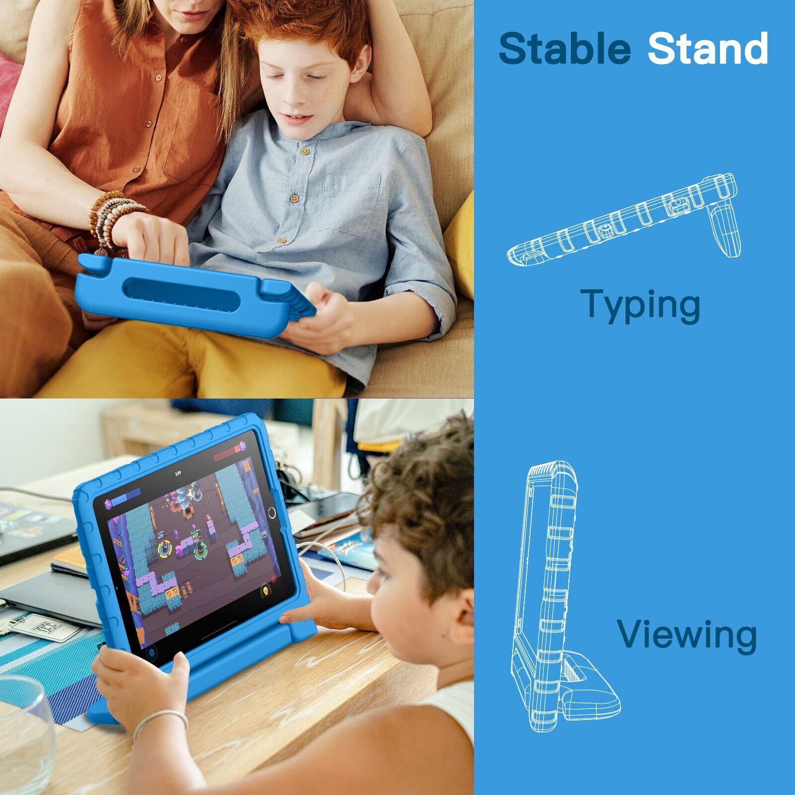 JETech 子供用 ケース iPad 10.2インチ(第9/8/7世代、2021/2020/2019)/iPad Air 3 10.5インチ(第3世代、2019)/iPad Pro 10.5インチ 2017対応 耐衝撃 軽量タブレットカバー ハンドルスタンド付き (ブルー)