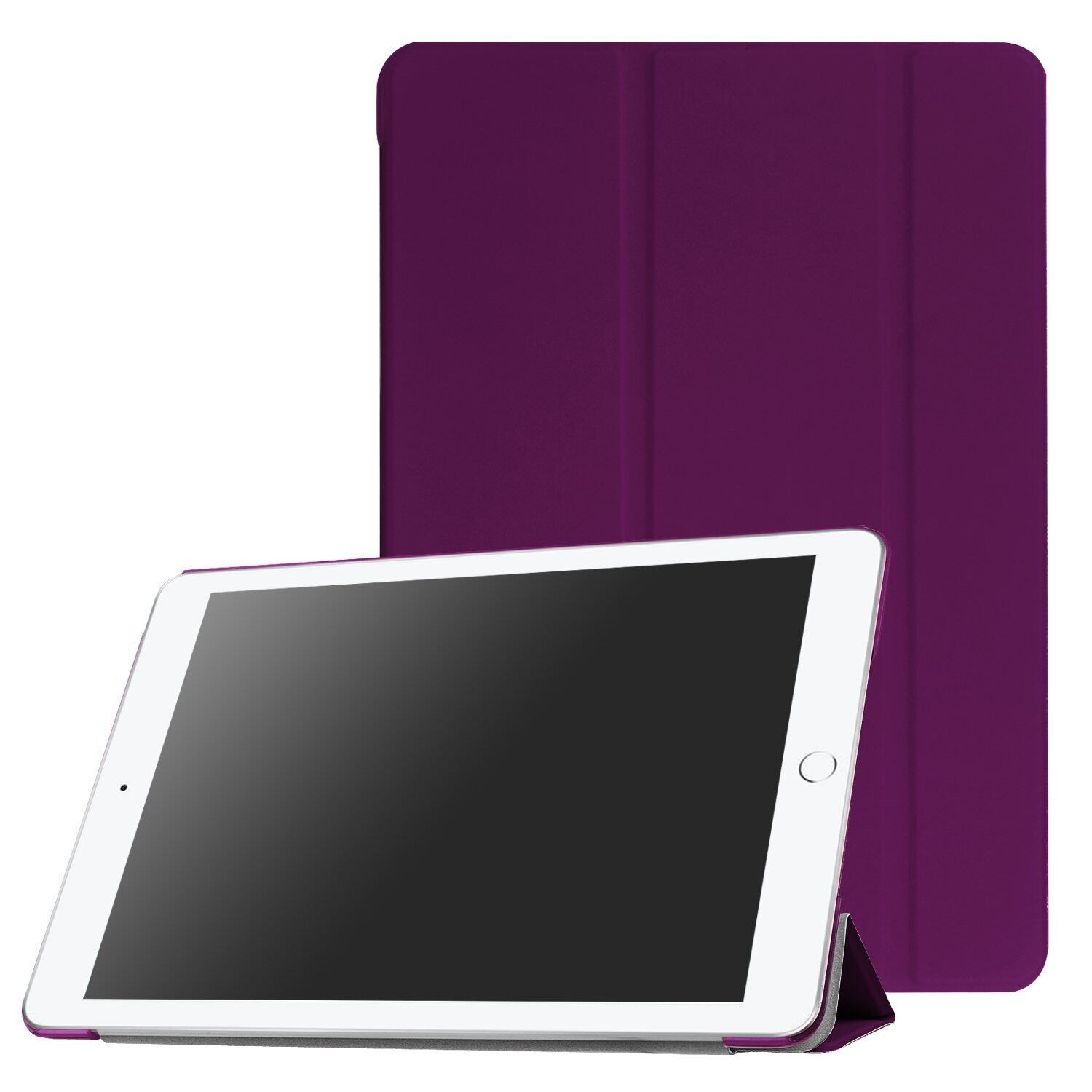 【在庫処分】ピーシーエーテック PUレザーケース 超薄 軽量型 スタンド機能 スマートカバー ケース 三つ折 クリアカバー iPad 9.7(2018第6世代) / iPad5(第五世代) / iPad 9.7(2017年型) 用 パープル
