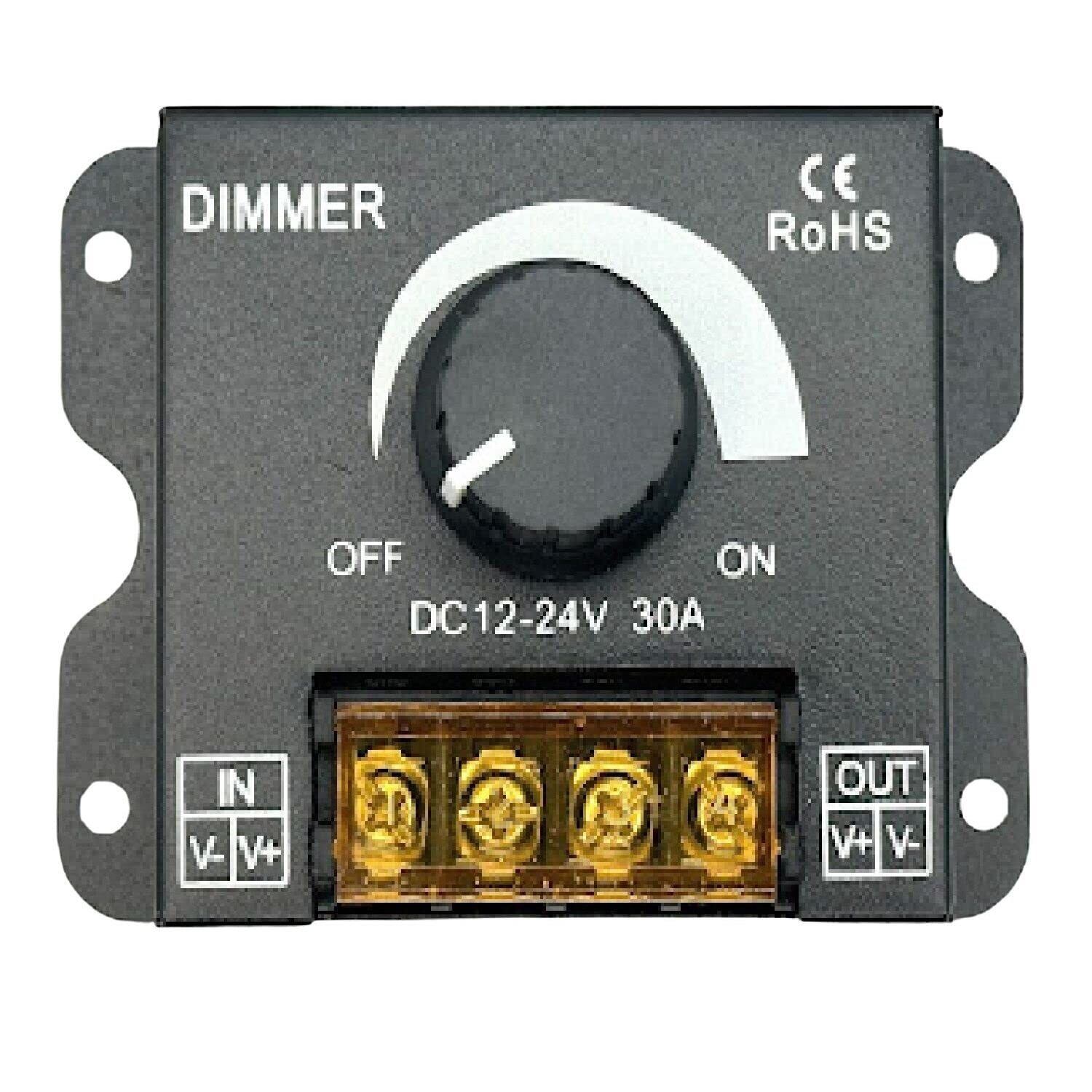 【数量限定】HTharros LED調光器 調光スイッチ 調光器 DC12-24V 30A ディマースイッチ ボリューム式 無段階調整 照明調光コントローラー フタ有り