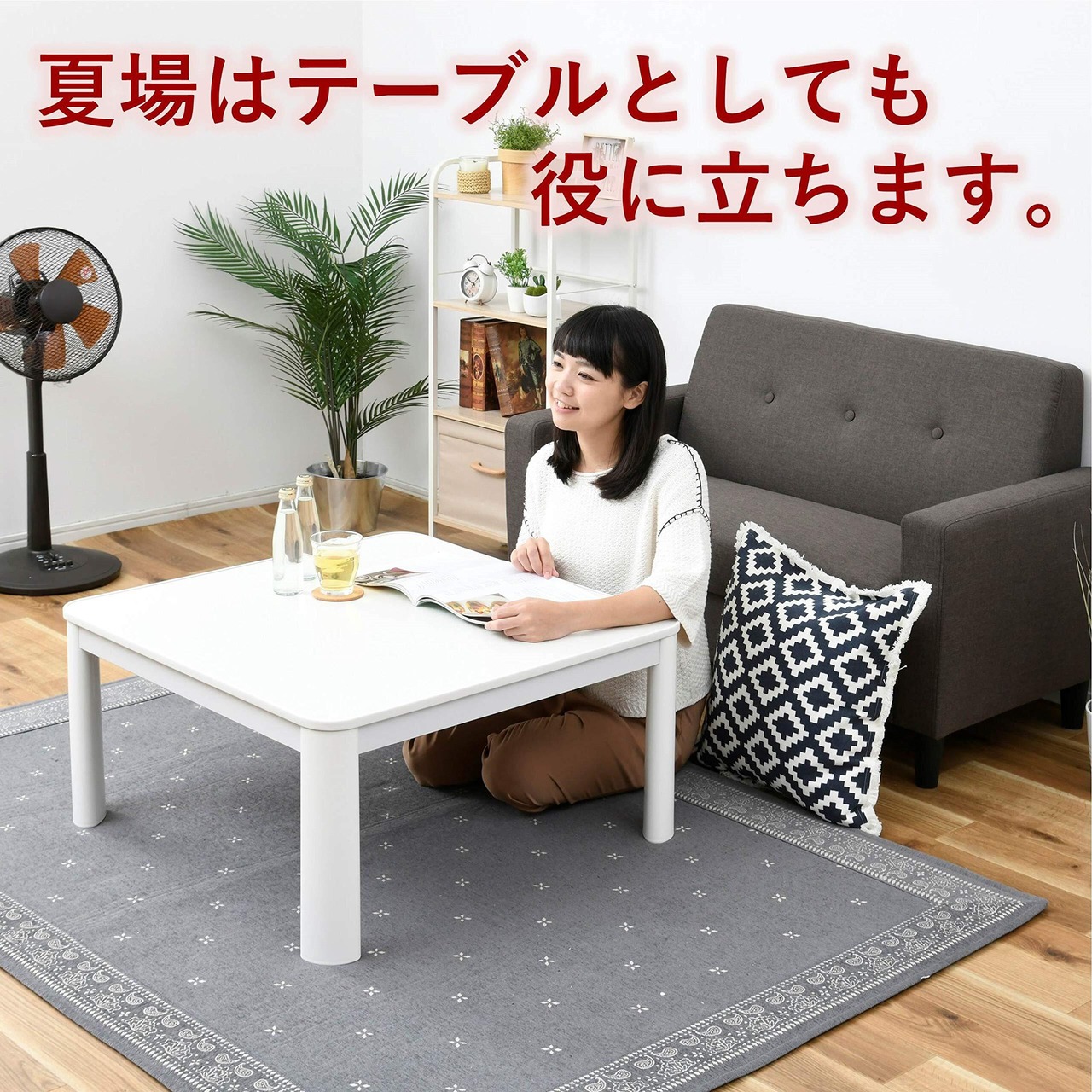[山善] カジュアル こたつ テーブル 75cm 正方形 一人暮らし 天面リバーシブル 中間入切スイッチ ホワイト SEU-752(W)