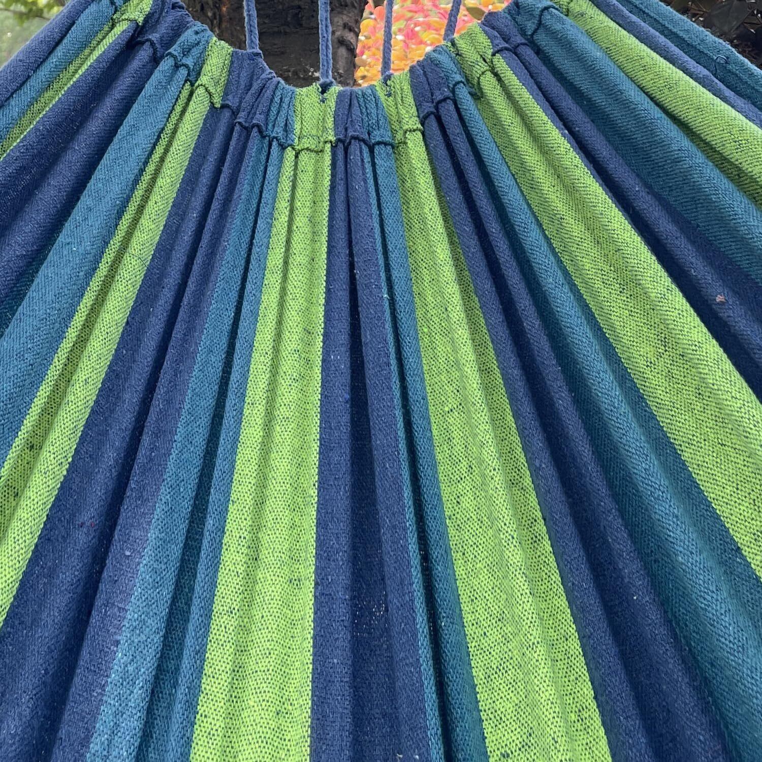 210cm×165cmの広々としたサイズは、全身を包み込む心地よい仕様で、安定感があります。しっかりとした布製のハンモックは、長時間のお昼寝やリラックスタイムに最適です!