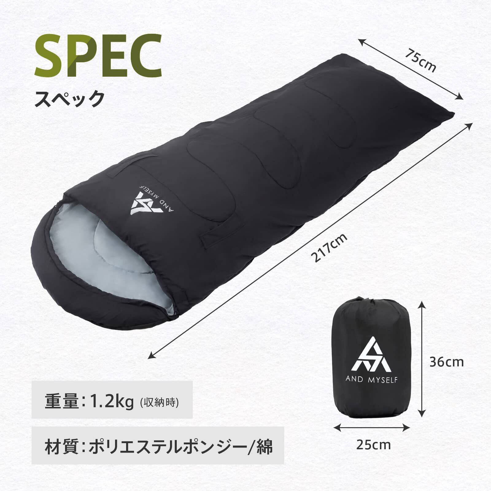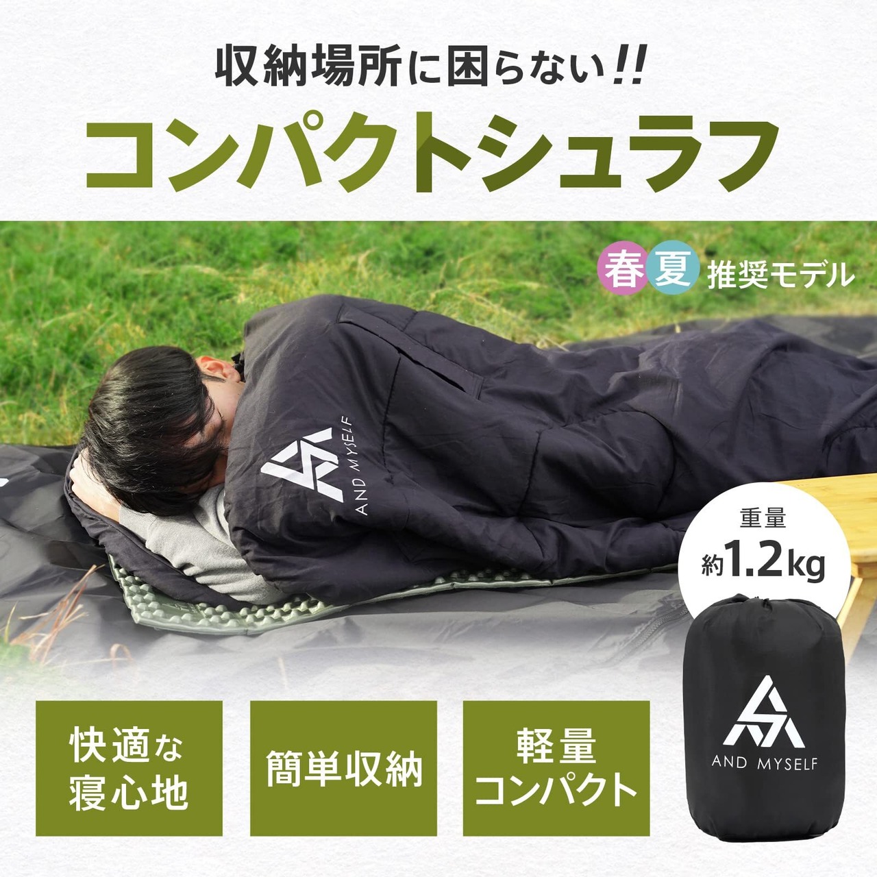 AND MYSELF 寝袋 シュラフ 保温 頭からすっぽりかぶれる 寝袋 コンパクト 軽量 マミー型 快適 収納袋付き アウトドア シュラフ コンパクトsleeping bag 寝袋