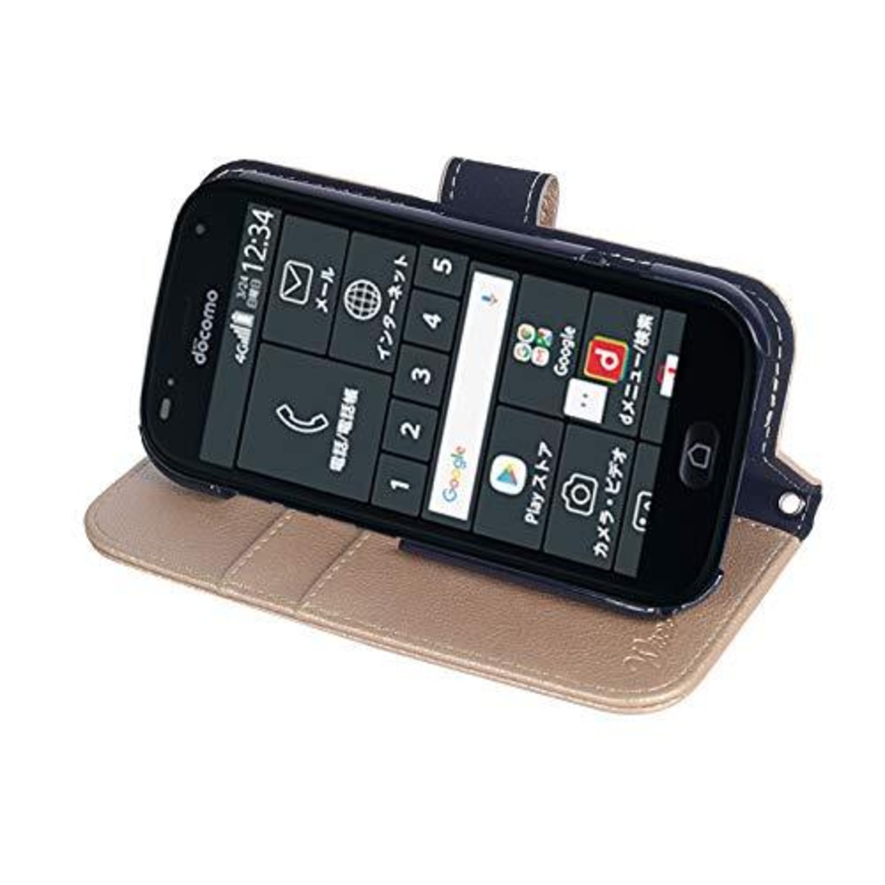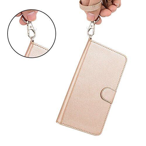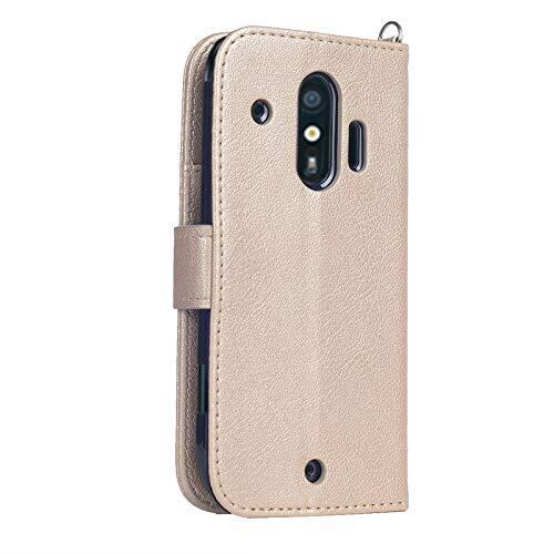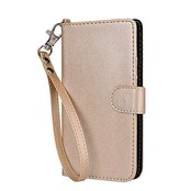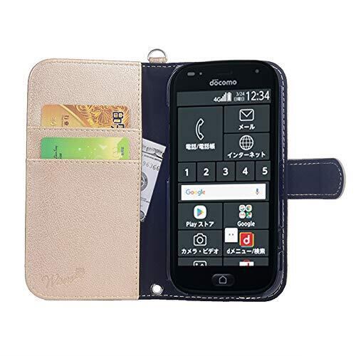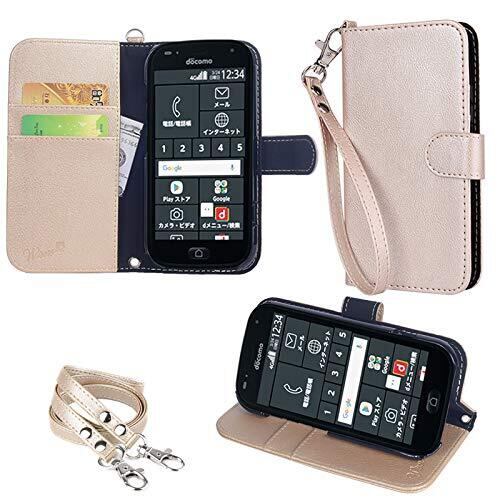 wisers らくらくスマートフォン F-42A / me F-01L 対応 手帳型スマホケース (ゴールド) 着脱しやすい (カードホルダー/スタンド機能付き) ストラップ 2種付き (ハンドストラップ/ネックストラップ)