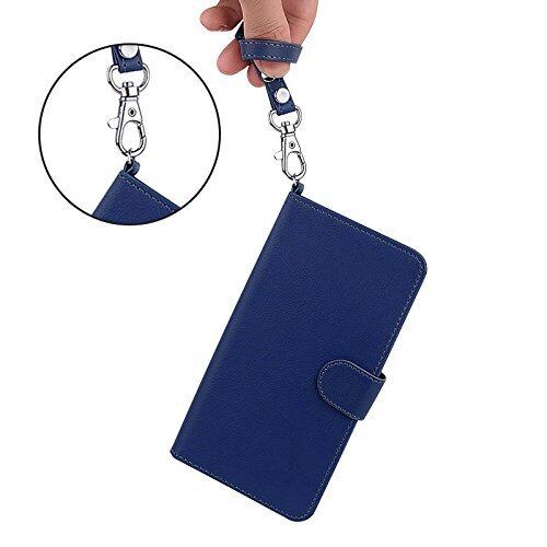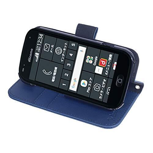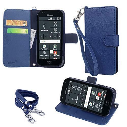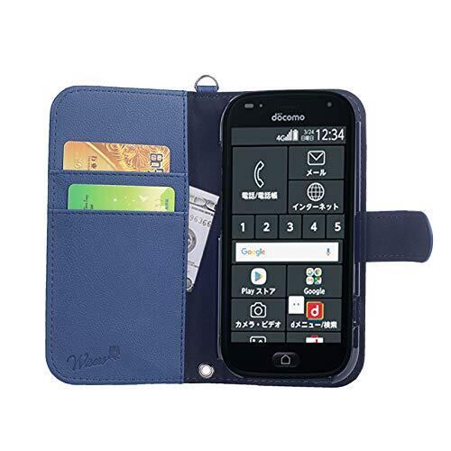 wisers らくらくスマートフォン F-42A / me F-01L 対応 手帳型スマホケース (ダークブルー) 着脱しやすい (カードホルダー/スタンド機能付き) ストラップ 2種付き (ハンドストラップ/ネックストラップ)
