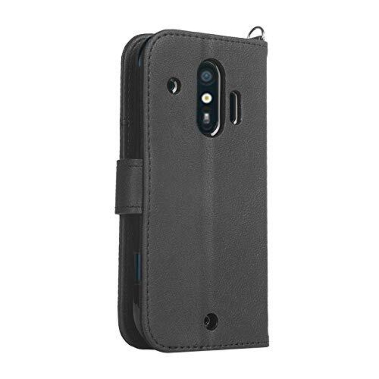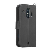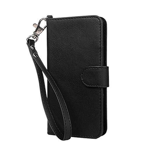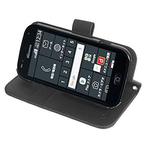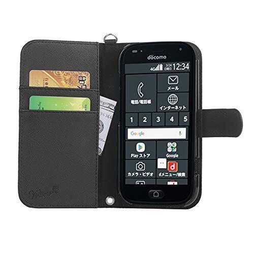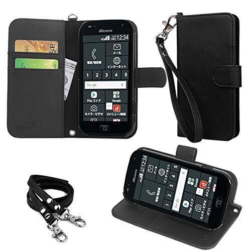 wisers らくらくスマートフォン F-42A / me F-01L 対応 手帳型スマホケース (ブラック) 着脱しやすい (カードホルダー/スタンド機能付き) ストラップ 2種付き (ハンドストラップ/ネックストラップ)