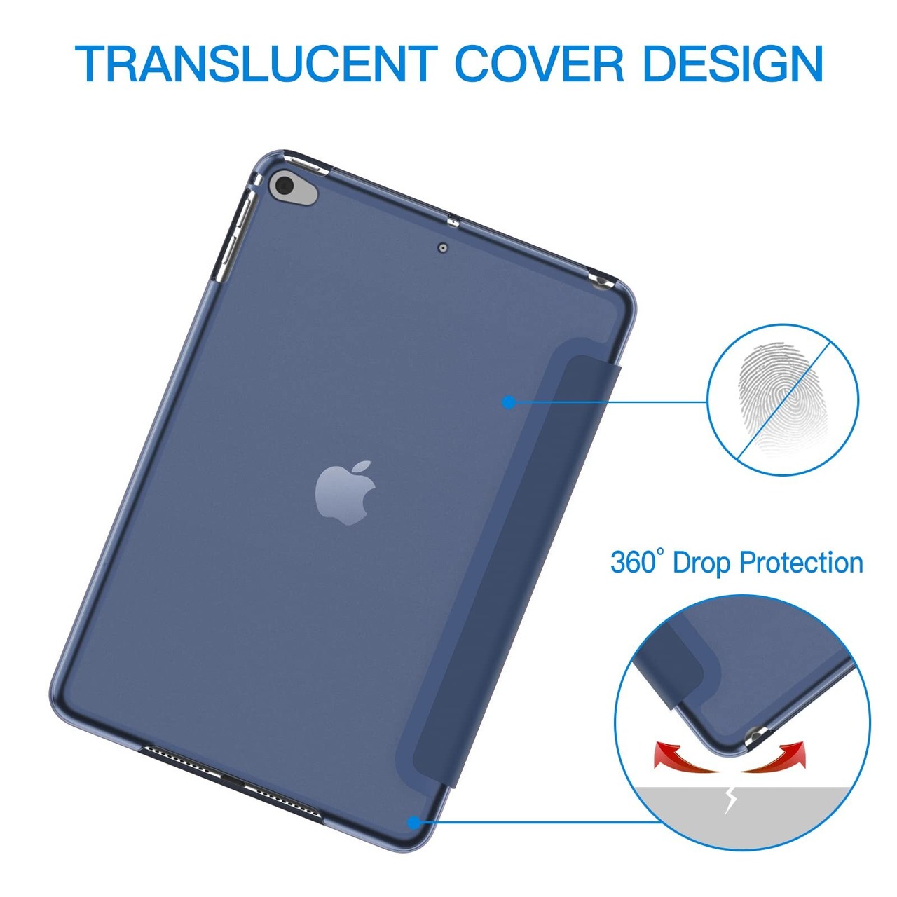 JETech iPadmini5 (2019モデルiPad Mini 5) 用 ケース 三つ折スタンド オートスリープ機能 (紺青)