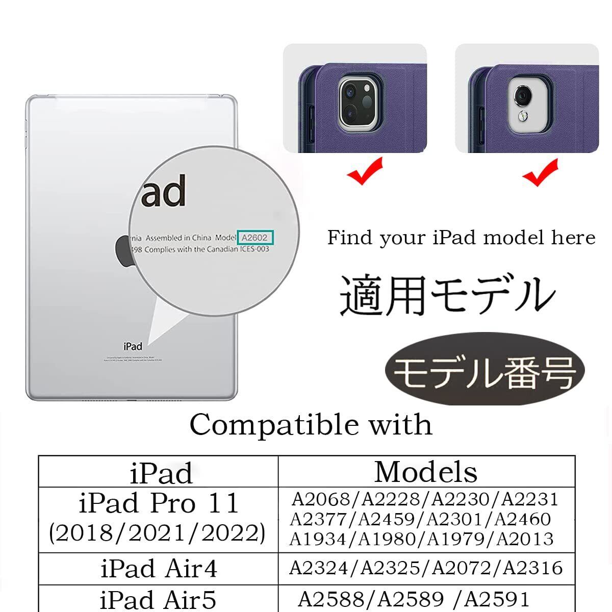 【対応モデル番号】:(2018/2021/2020年発売 iPad Pro 11インチ モデル番号:A2377/A2459/A2301/A2460/A2228/A2068/A2230/A2231/A1980/A2013/A1934/A1979)(2022発売ipad Air 第5世代 モデル番号:A2588/A2589 /A2591)(2020発売ipad Air 第4世代 モデル番号:A2324/A2325/A2072/A2316)にも兼用してます ️ご注意:当商品上記機種のみ適用できますので、他の機種には対応できません。、ご注文の際に、お手元機種の背面にあるモデル番号を確認をお願い致しま。