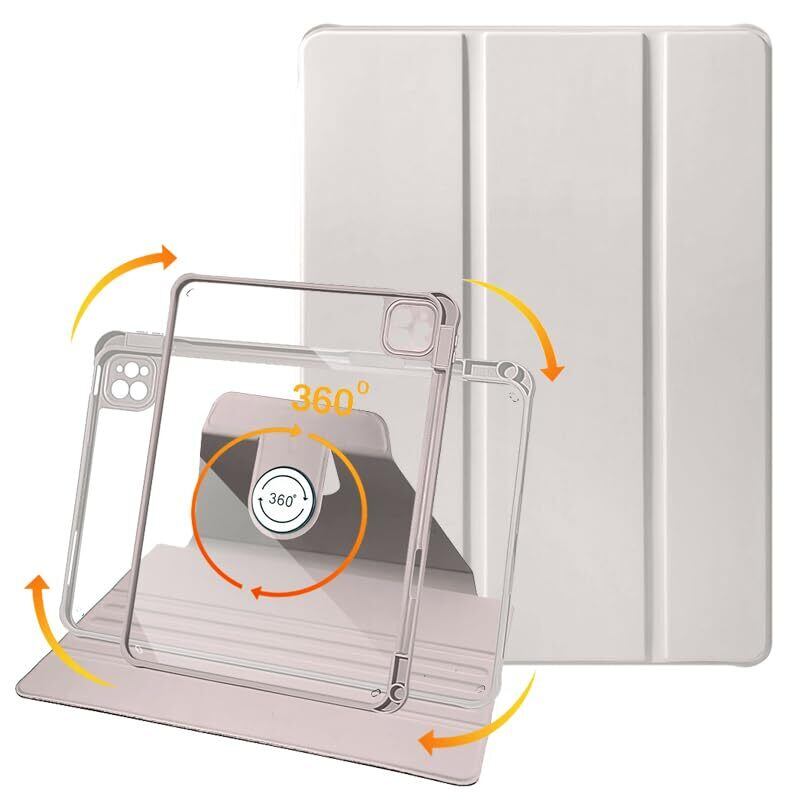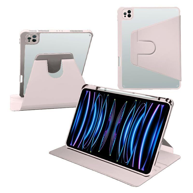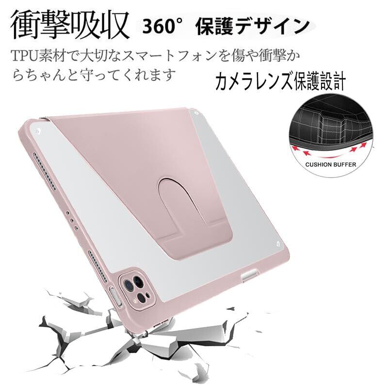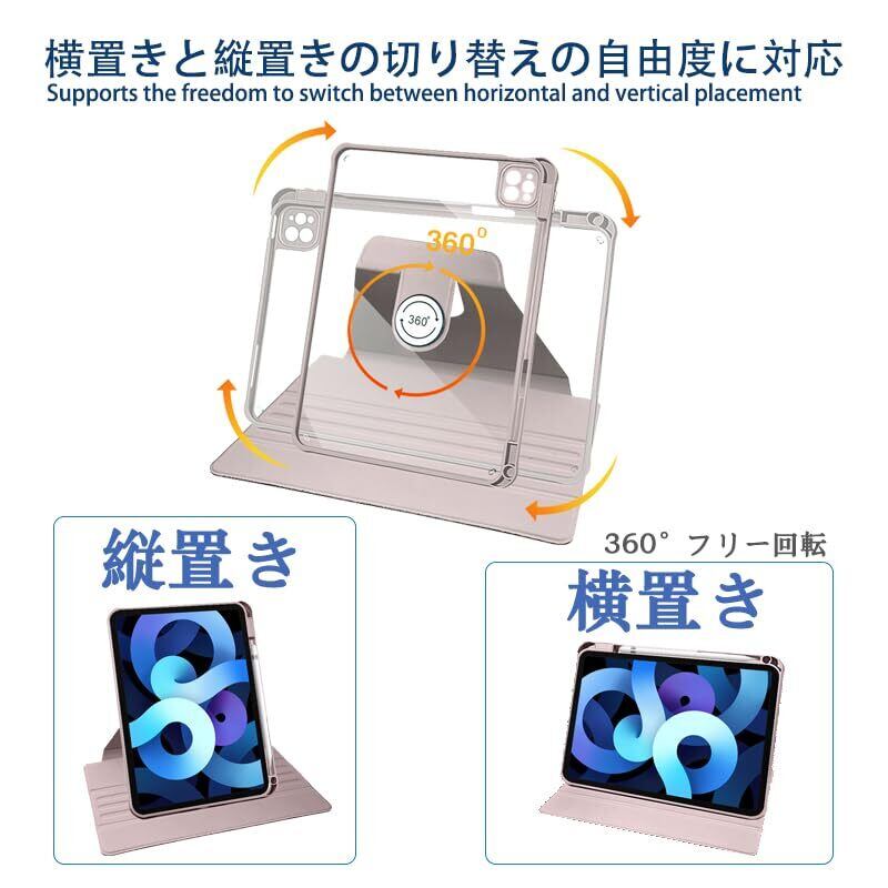 iPad Pro 11 ケース 2023/2022/2021/2020/2018 モデル兼用 PUレザー 360度回転式 磁気吸着 iPad Air 第5 / 4 世代 ケース 透明カバー スタンド 調節可能ハンドバンド ペン収納 軽量 便利 Apple Pencil 収納 耐衝撃 iPad Pro 11 インチの iPad Air 第五 四 世代 兼用 カバー ピンク
