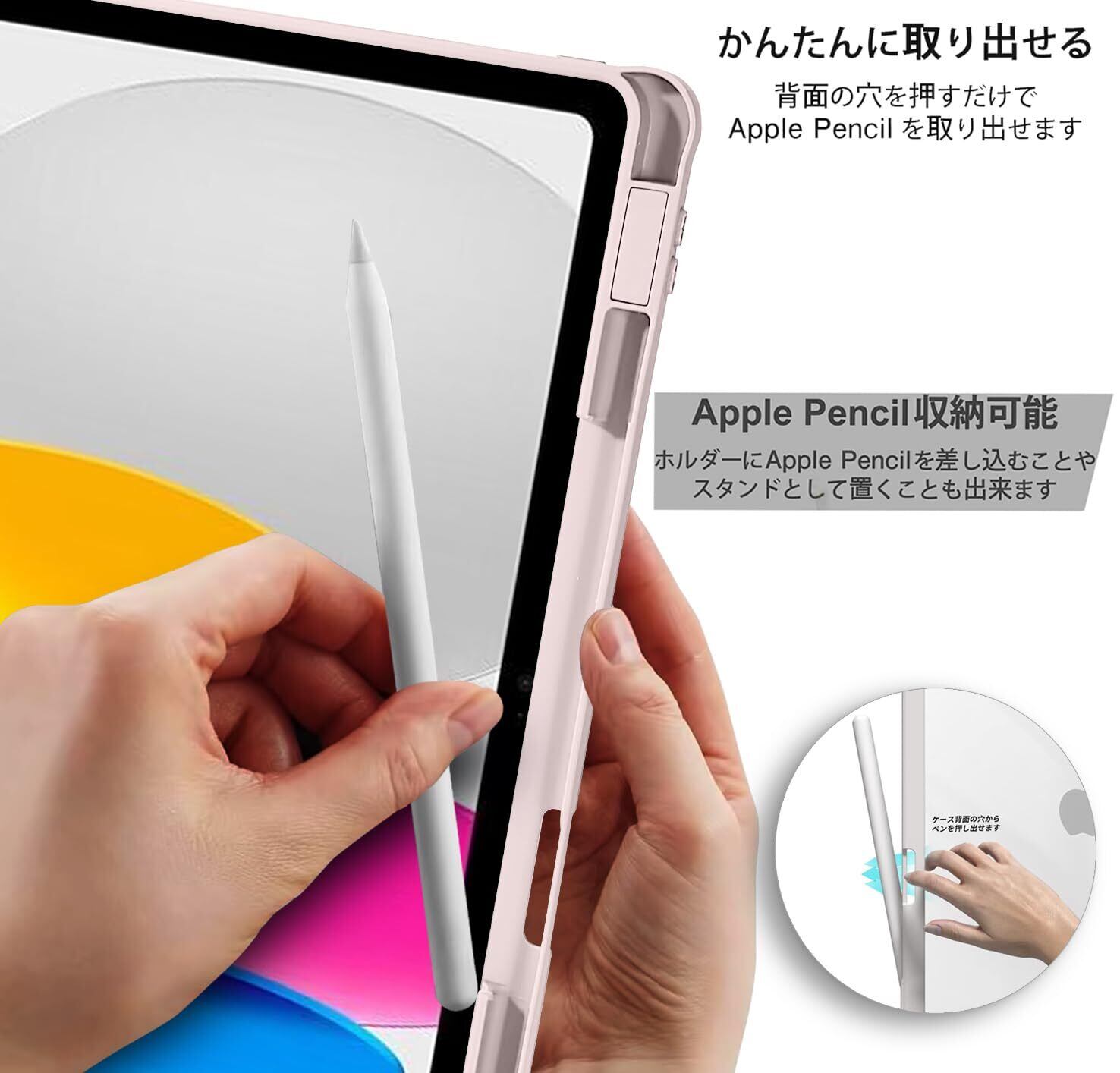 【アップルペンシル収納可能】Apple Pencilを使用してる人にぴったりの機能で、スタンド機能が付いているものがあります、 持ち運びにとても便利です。横にある穴はペンスタンドとしてお使いいただき、紛失防止にも役だちます。ペンシルのペアリングと充電機能も対応しています.