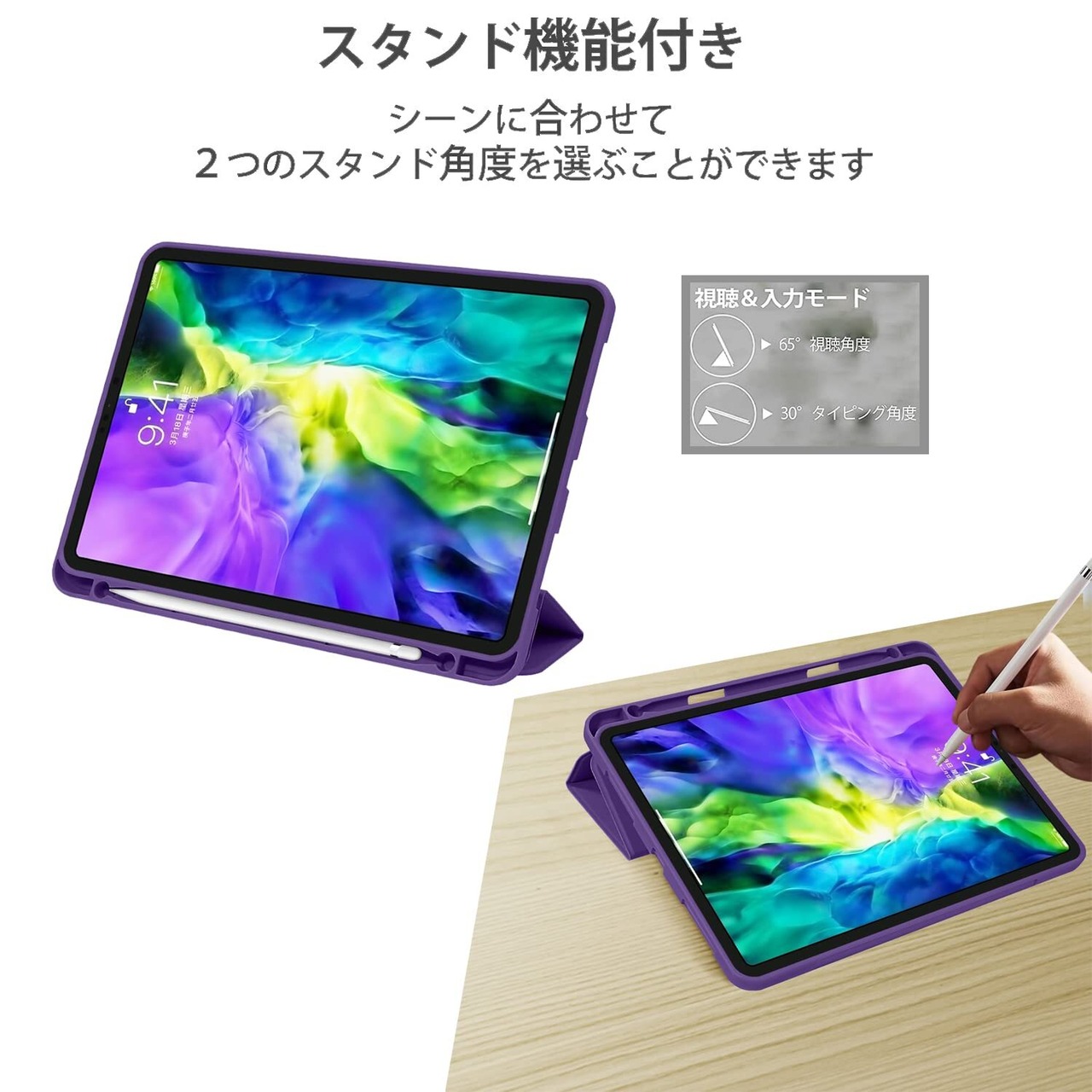 iPad Pro 11 ケース 2022/2021/2020/2018 モデル兼用 オートスリープ/ウェイク機能対応 iPad Air 第5 / 4 世代 ケース Apple Pencil 収納可能 三つ折スタンド スリープ機能 軽量 傷つけ防止 高質PUレザー iPad Pro 11 インチの iPad Air 第5 / 4 世代 2022/2020 モデル 通用です (パープル)