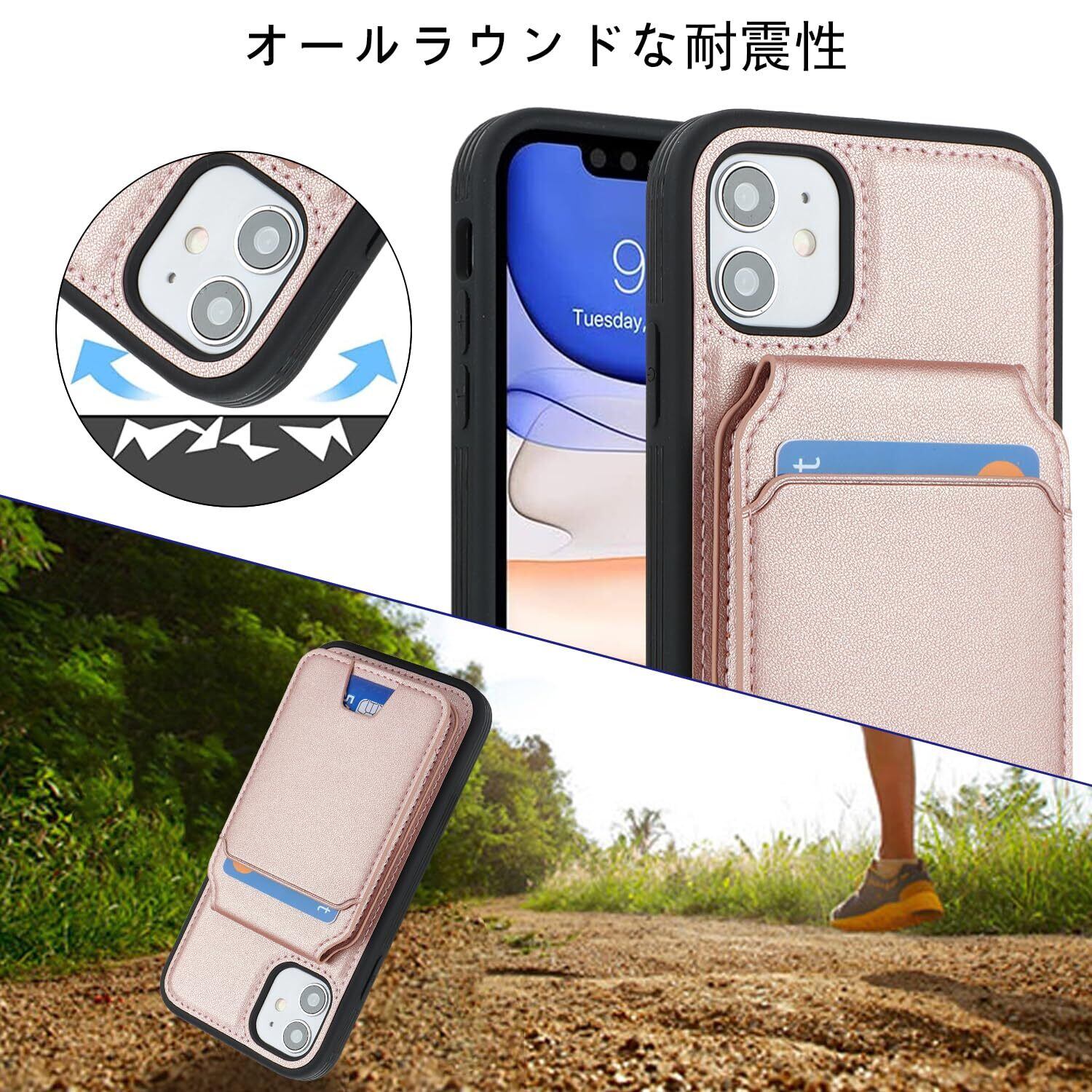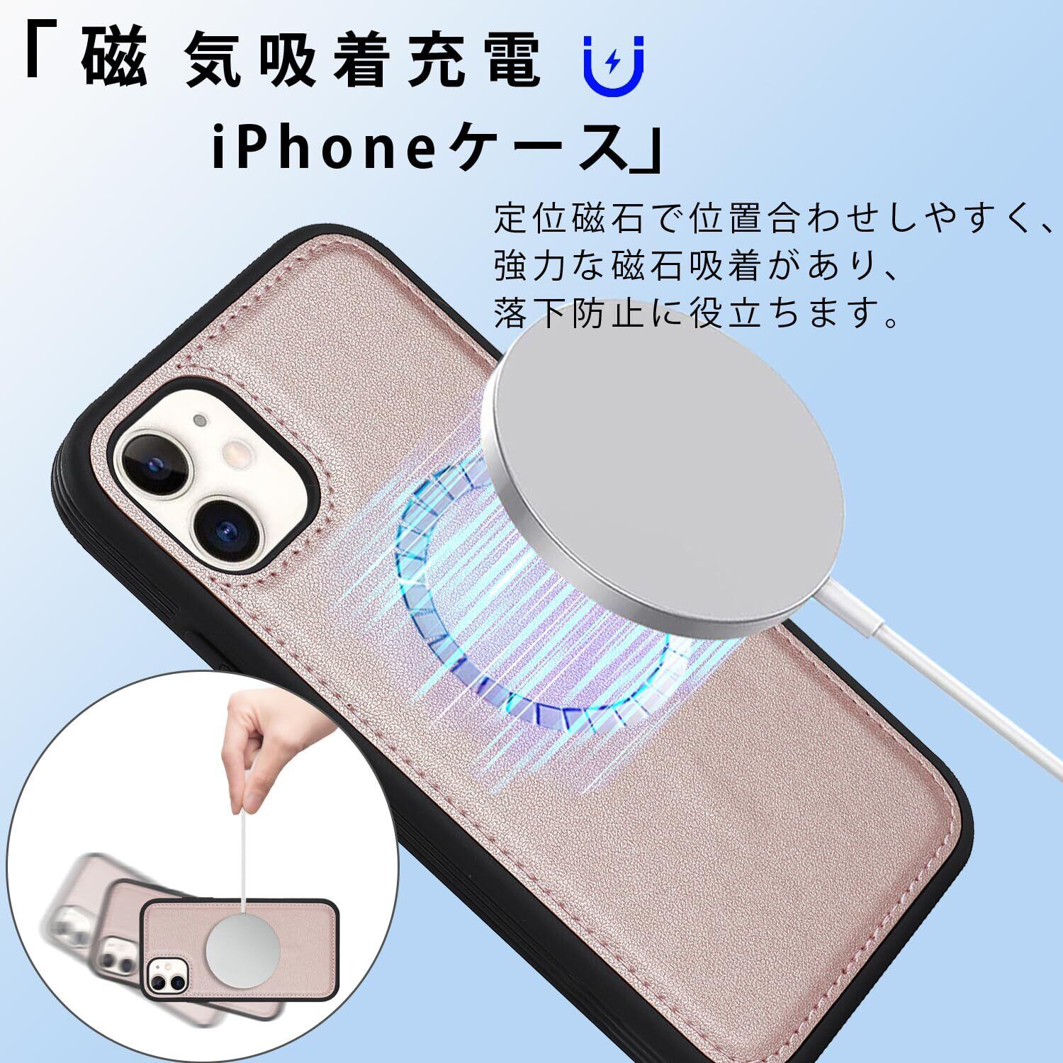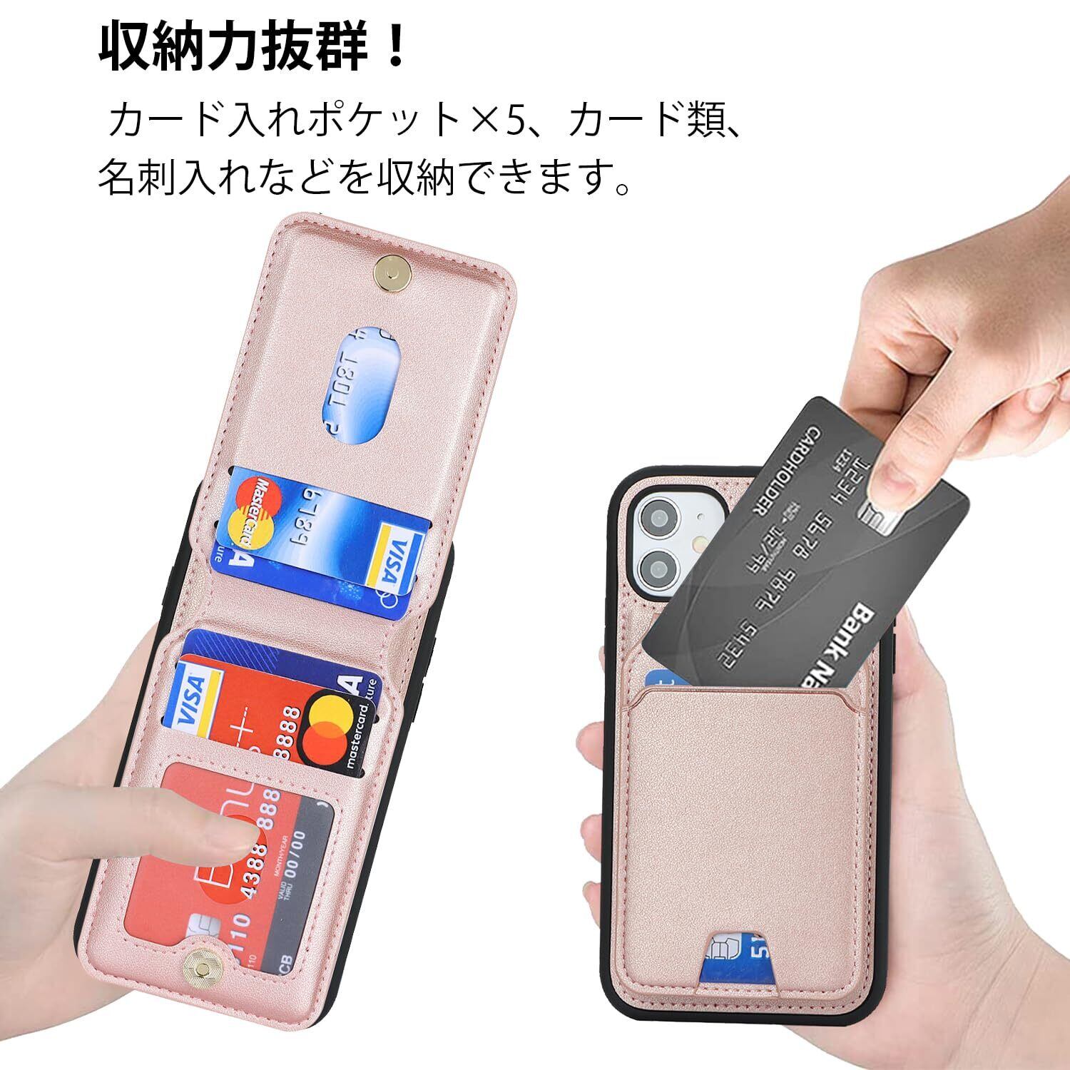 【リムーバブルカードケース】◀ケース背面には取り外し可能な磁気吸引カードケースが付属し、カードを5枚収納できる。たとえば、スイカカードなどの毎日の重要なカードや現金は簡単に保管できます。iPhoneシリーズ専用に設計されているので、ケースを装着したまま、音量ブボタン、カメラ、コネクターなどのを自由に使えます。実用性が高いです。◀横置きスタンド機能:取り外し可能なカードスロットは、横画面でも縦画面でも簡単に実現できる携帯電話スタンドに簡単に変換できます。映画を見たり読んだりすることで手を解放できます。