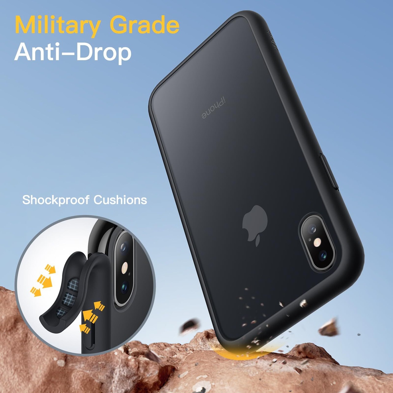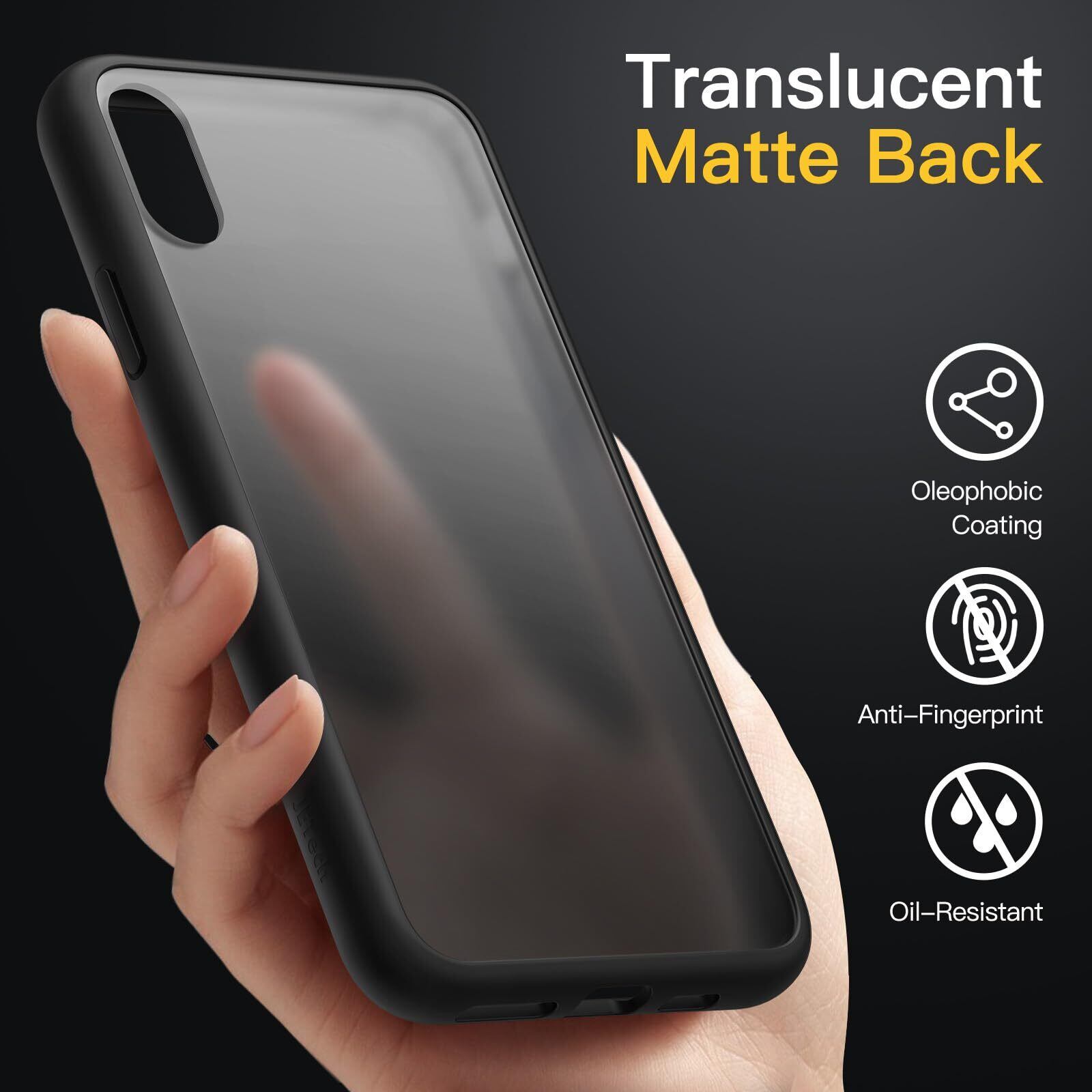 JETech マットケース iPhone Xs と iPhone X 5.8インチ 耐衝撃性ミリタリーグレードの落下防止 つや消しの半透明の背面電話カバー 指紋防止 (ブラック)