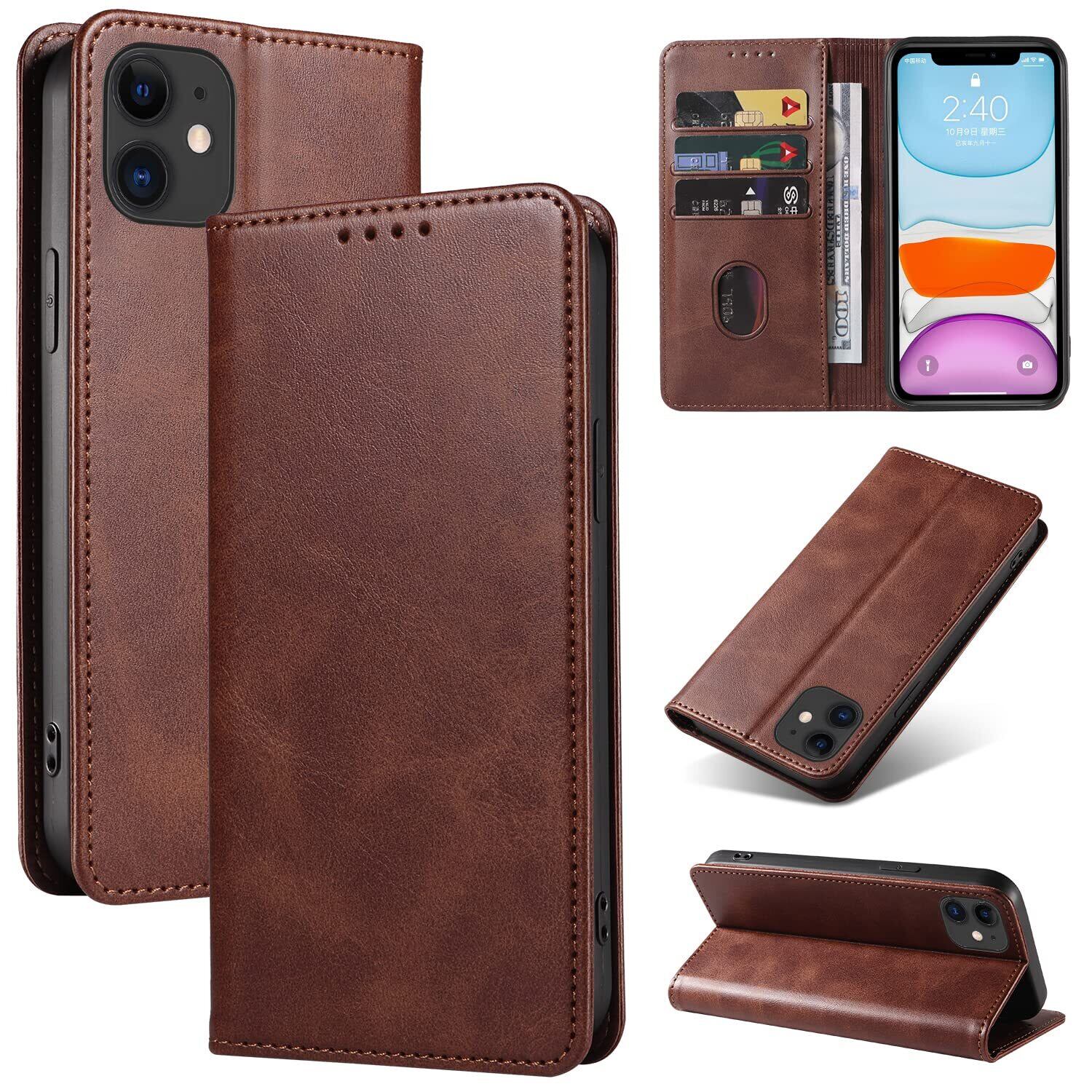 iPhone 11 ケース イフォン11 スマホケース 手帳型 携帯カバー レザー 耐衝撃 軽量 着脱しやすい 放熱性 マグネット式 カード収納 スタンド機能 iphone 11 対応 360度保護 PinLiSheng (ブラウン, iphone 11)