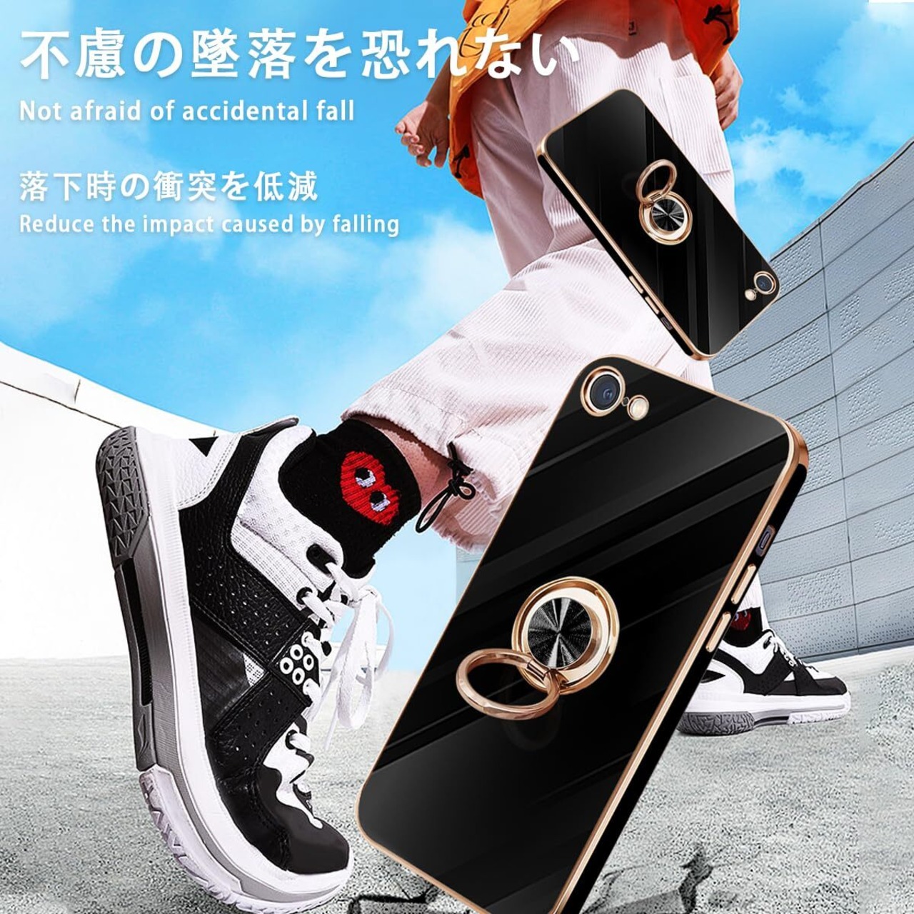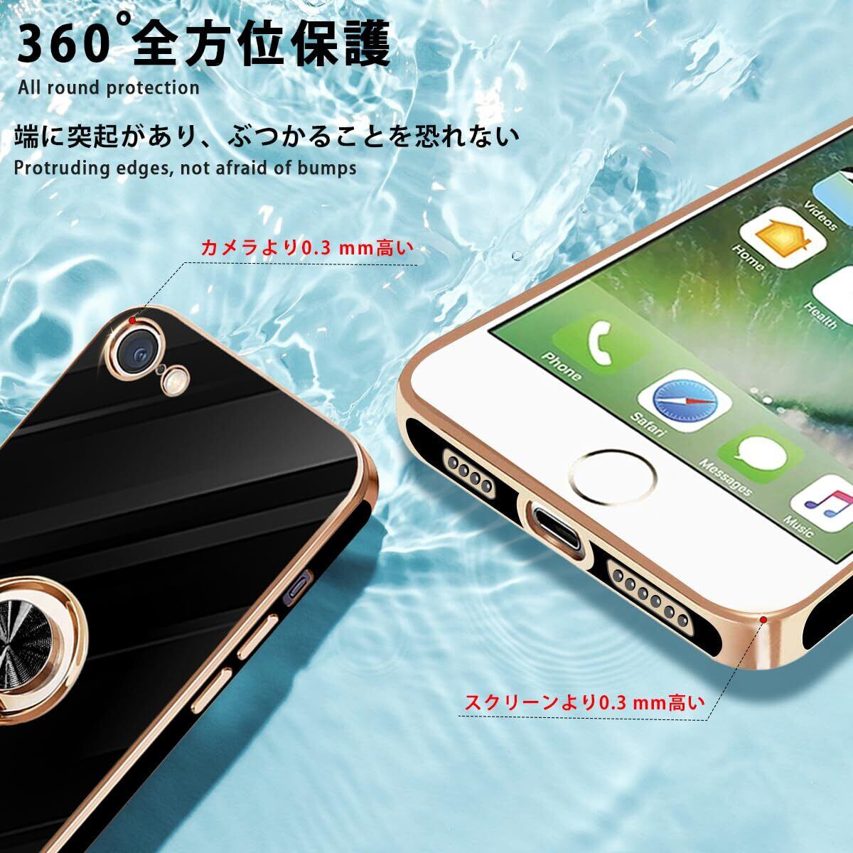 danliangqifei iPhone SE ケース iPhone第3世代カバー 第2世代 スマホケース アイフォン SE3/SE2 リング 耐衝撃 360°回転 スタンド機能 車載ホルダー対応 保護カバー レンズ保護 ストラップホール付き 4.7イン(ブラック)