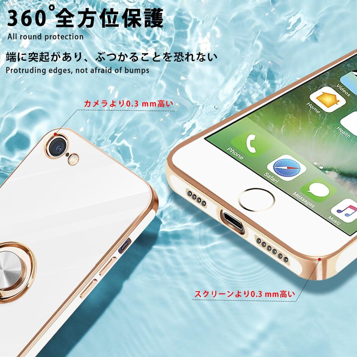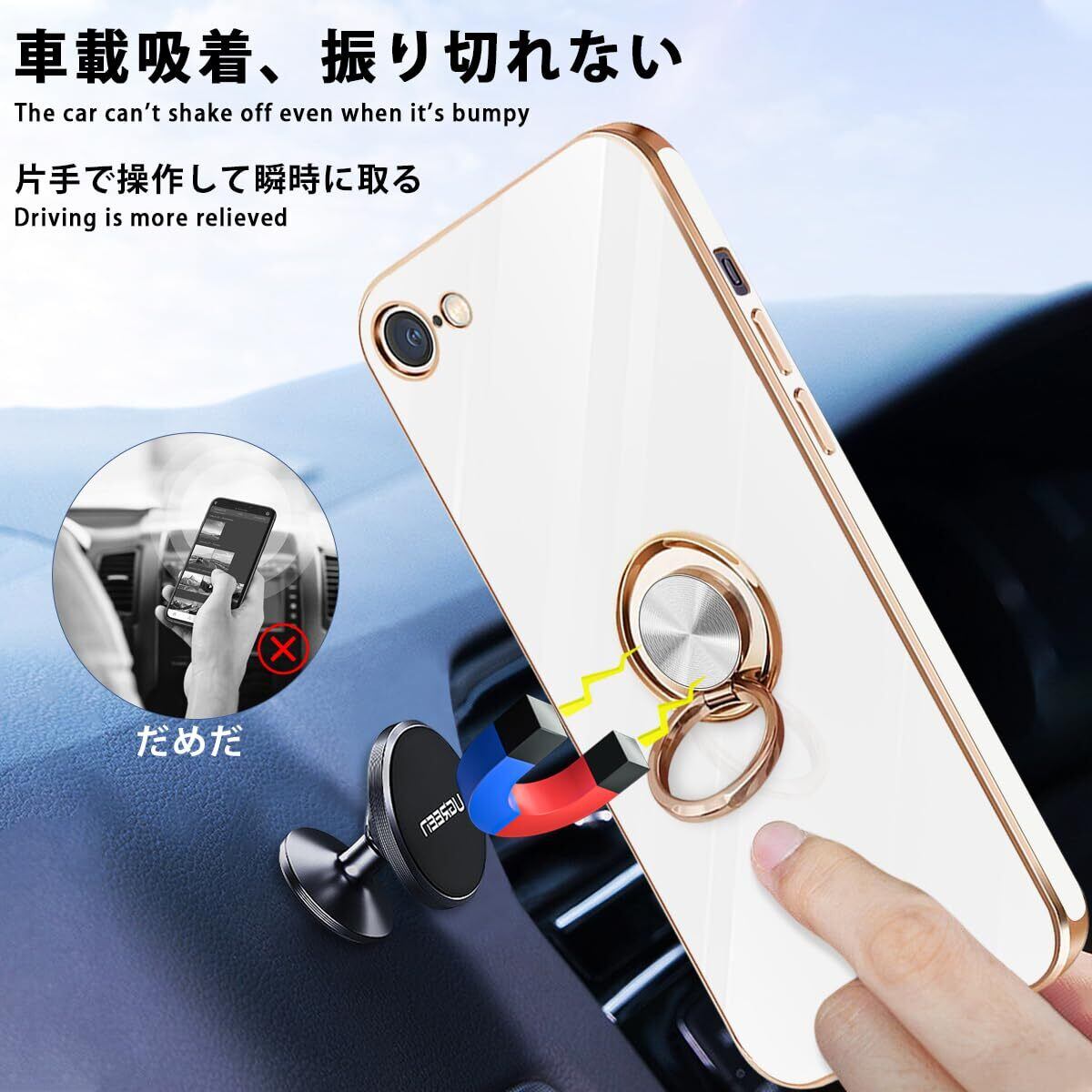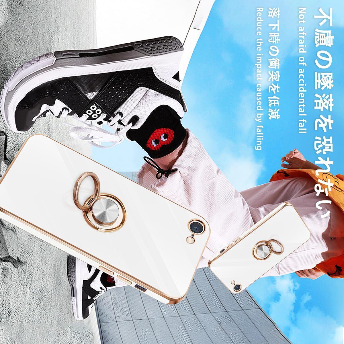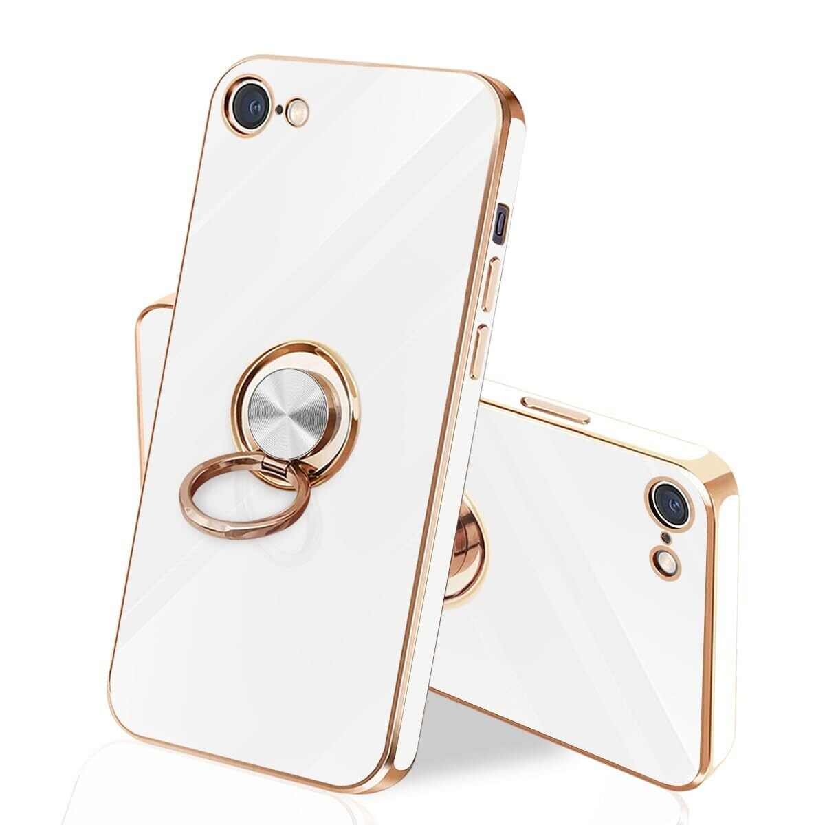 danliangqifei iPhone SE ケース iPhone第3世代カバー 第2世代 スマホケース アイフォン SE3/SE2 リング 耐衝撃 360°回転 スタンド機能 車載ホルダー対応 保護カバー レンズ保護 ストラップホール付き 4.7イン(ホワイト)