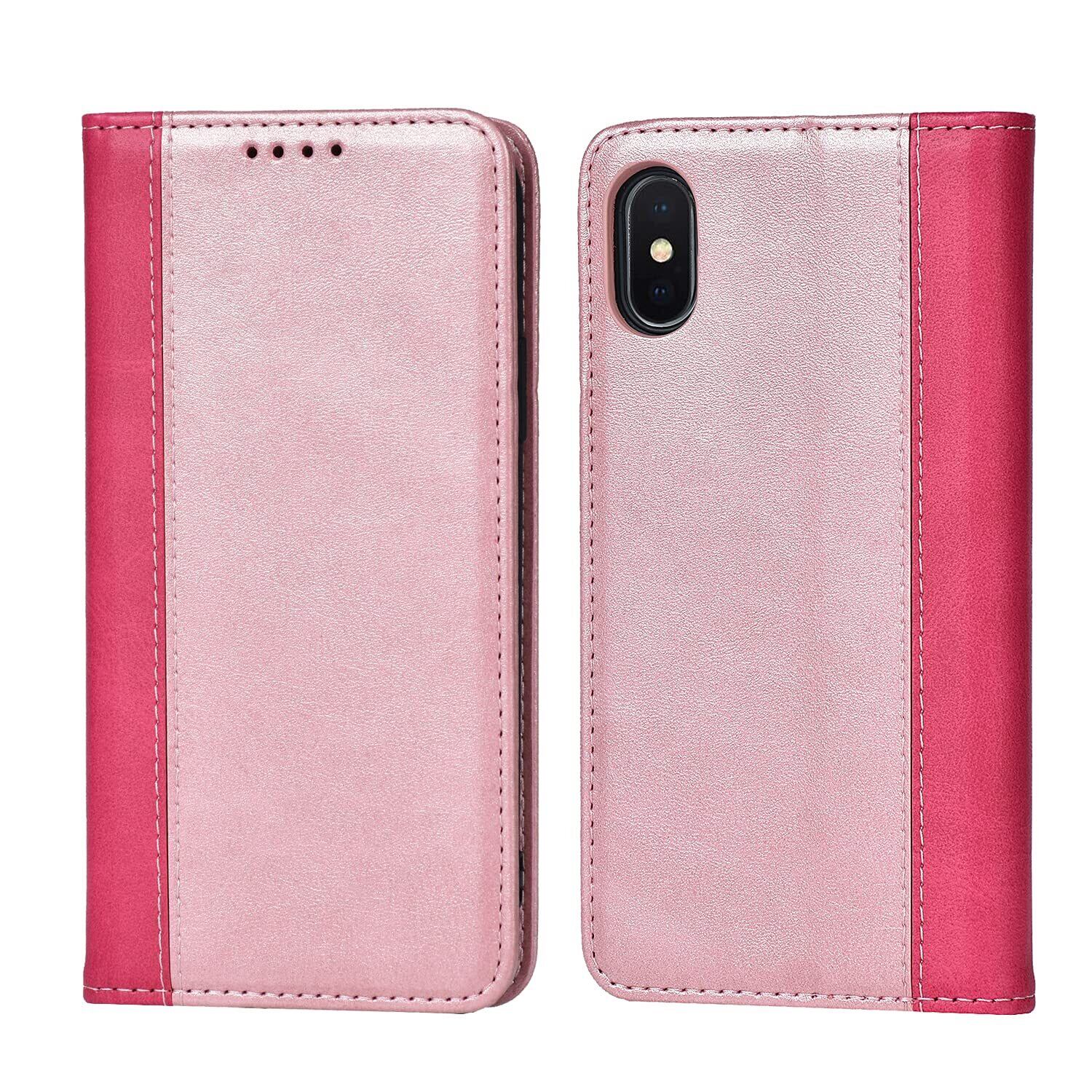 Havaya iPhone XS ケース iphone x ケース iphoneXスマホケース 手帳型 耐衝撃 カバー マグネット カード収納(アイフォンX/あいふぉんXS/いphone10/アイホン10s 5.8インチ対応)-ローズゴールド+ローズ