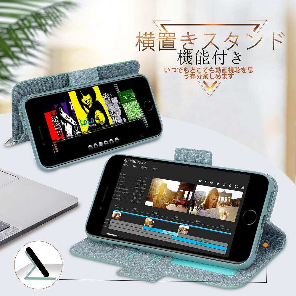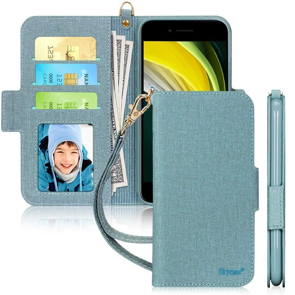 Skycase iPhone SE ケース 第3世代 2022 iPhone SE用ケース [第2世代] / iPhone8用 / iPhone7用 ケース [スキミング防止機能] PUレザー 手帳型 カード収納 スタンド機能 ストラップ付き 全面保護 耐汚れ 耐衝撃 4.7インチ 2022 新型 iPhone SE /iPhone8 /iPhone7 兼用 スマホケース ミントグリーン