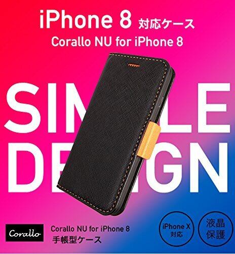 【Corallo】 iPhone 2022 SE3 / SE2 対応 ケース 手帳型 ストラップ 付き マグネット 式 薄型 スリム 手帳 レザー カバー カード 収納付 スマホケース [ iPhoneSE3 2022年 第3世代 iPhoneSE2 iPhone 8 iPhone7 アイフォンSE3 アイフォンSE2 アイフォン8 アイフォン7 対応 ] NU ブラック×オレンジ