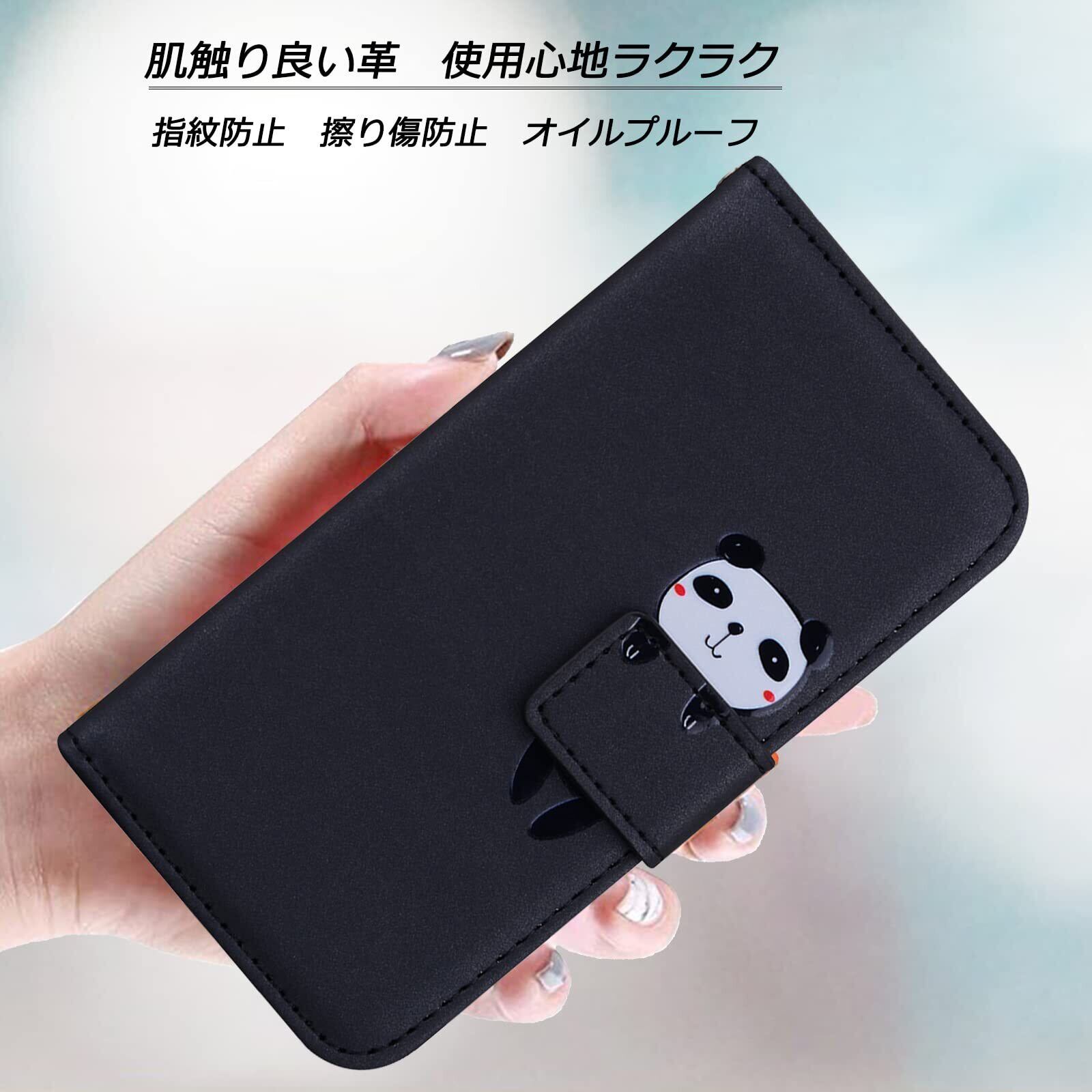 ❹【スマイルパンダちゃんのデザインと上質な素材】型押しの可愛い猫のモチーフと上品なレザーの組み合わせるケースであり、高級感ある色合いでちょっぴり大人なスマホケース。裏側ケースはソフトのtpuで仕上げられて、着脱も便利です。
