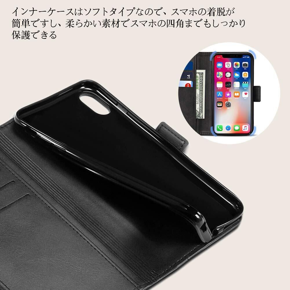 機能性 横置きスタンド機能が付いて、好きな角度で動画鑑賞や読書などを楽しめます。ブック型ケースとして、内側には三つのカード入れとフリーポケットがつき、名刺や定期券の収納に優れているiPhoneX、Xsケースです。