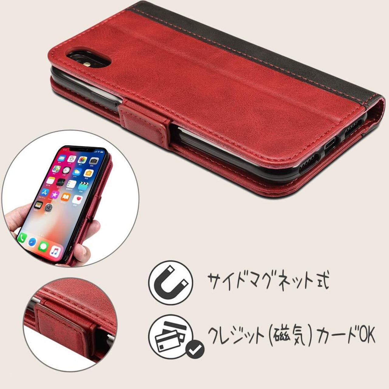 【2022最新】iPhone Xs ケース 手帳型 iPhone x ケース ワイヤレス充電対応 Rssviss アイフォン x xs iPhone xカバー マグネット W3 iPhoneXS iPhoneX対応 5.8inch レッド