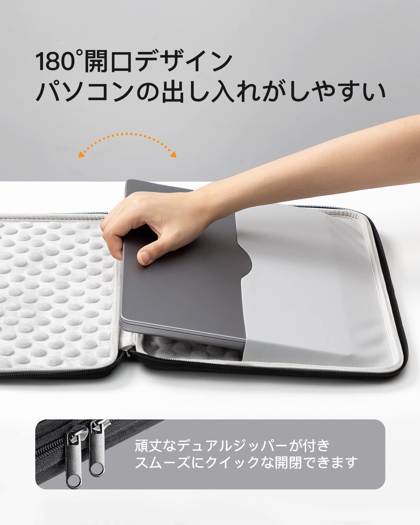 秀逸なグレー:Inateckは常にミニマリストのデザインコンセプトを追求しています。このラップトップスリーブも例外ではありません。クラシックなグレーの外観は、洗練された秀逸な上質感を醸して、通勤、ビジネス、通学など様々なシーンで活躍します。