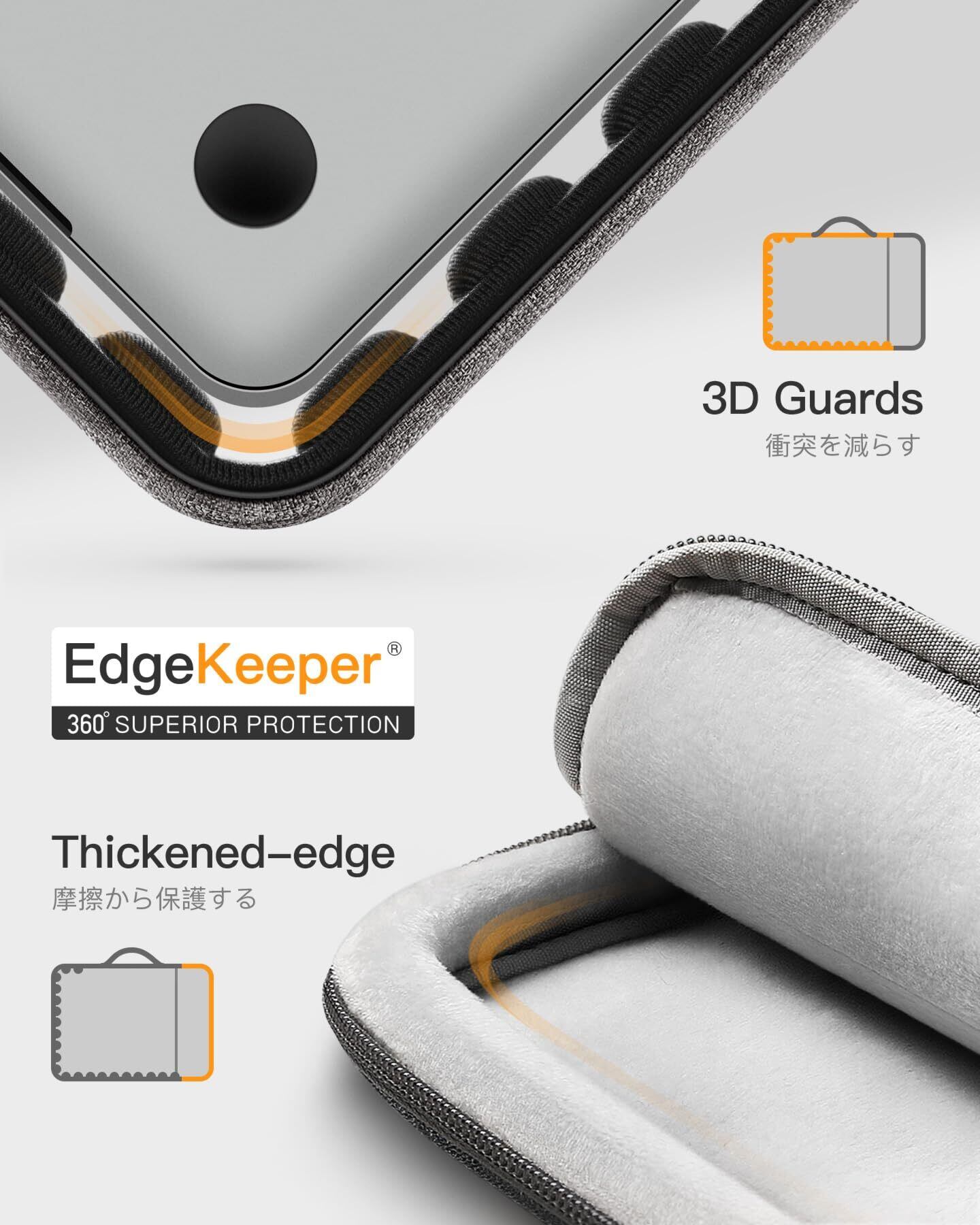 最適化の保護機能:ジッパーの内側に保護ストリップがセットされてあり、デバイスをジッパーに当てて、傷をつけることを防止します。底部と側面に衝撃に強いクッションがあります。ぶつかることからを効果的に保護します。裏側には柔らかいフランネル生地を採用して、機体を傷から守ります。