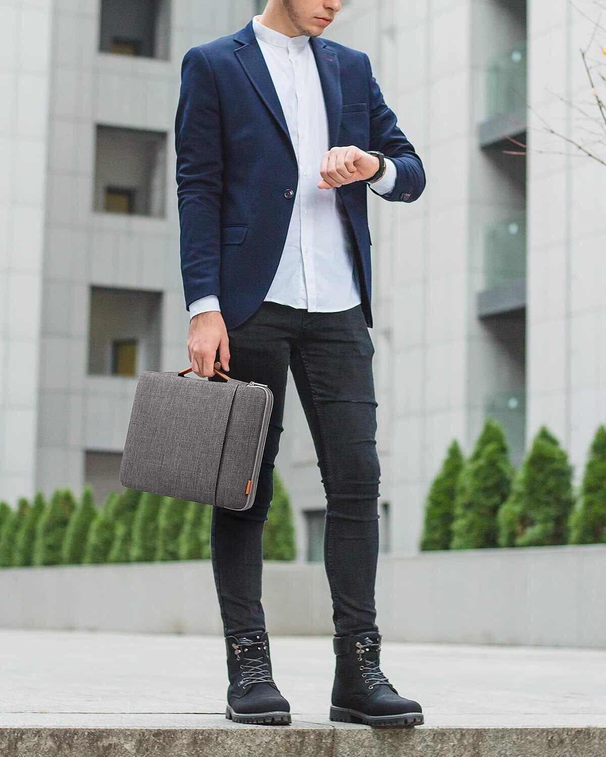 弾力あり持ち手: 弾力あり持ち手は握りやすくて、隠す事が可能で、ラップトップスリーブとして使用できます。持ち手を出すと、スリーブがバッグに変身します。ニーズに応じて様々な場面で活躍しています。