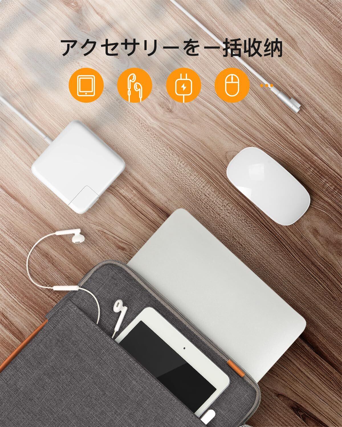 大容量アクセサリーバッグ:ジッパー付きの大容量フロントポケットが電源アダプター、ケーブル、マウス、その他のアクセサリを一気に収納できます。