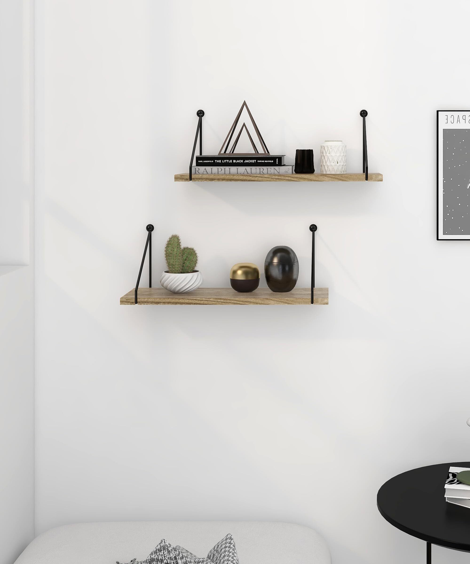 Afuly ウォールシェルフ 壁掛け棚 壁棚 壁掛けラック 壁ラック棚 壁につける家具棚 おしゃれ 2個セット 壁面収納 ウォールラック 飾り棚 浴室 台所 リビング 天然木製 木色