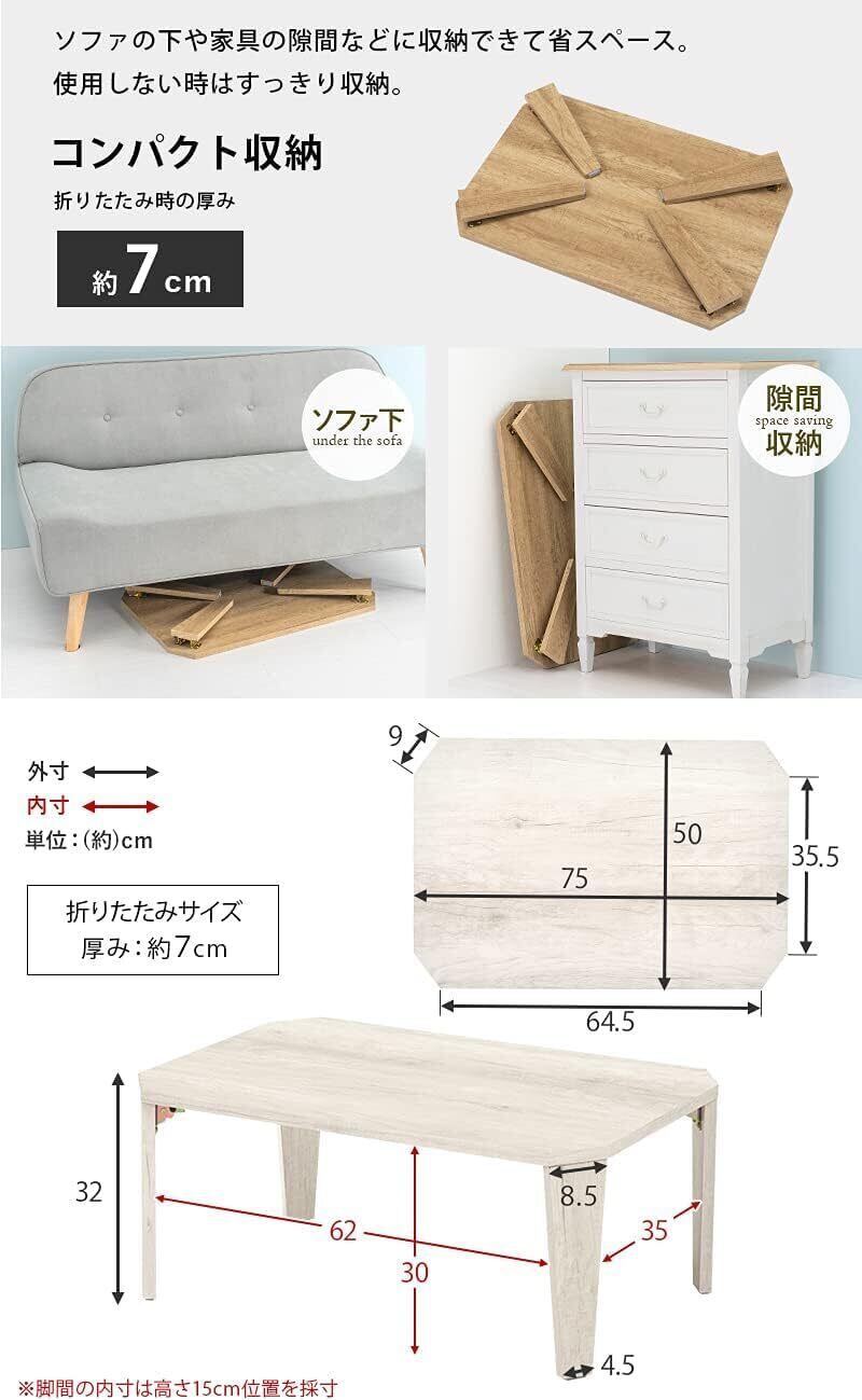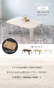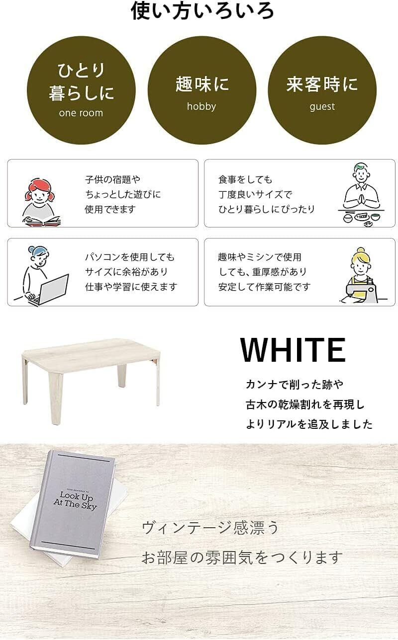 萩原(Hagihara) ローテーブル センターテーブル 机 【木目調天板がスタイリッシュ】 折りたたみ 完成品 軽量 ヴィンテージ リビング ソファテーブル 幅75×奥行50×高さ32 ホワイト MT-6860WS
