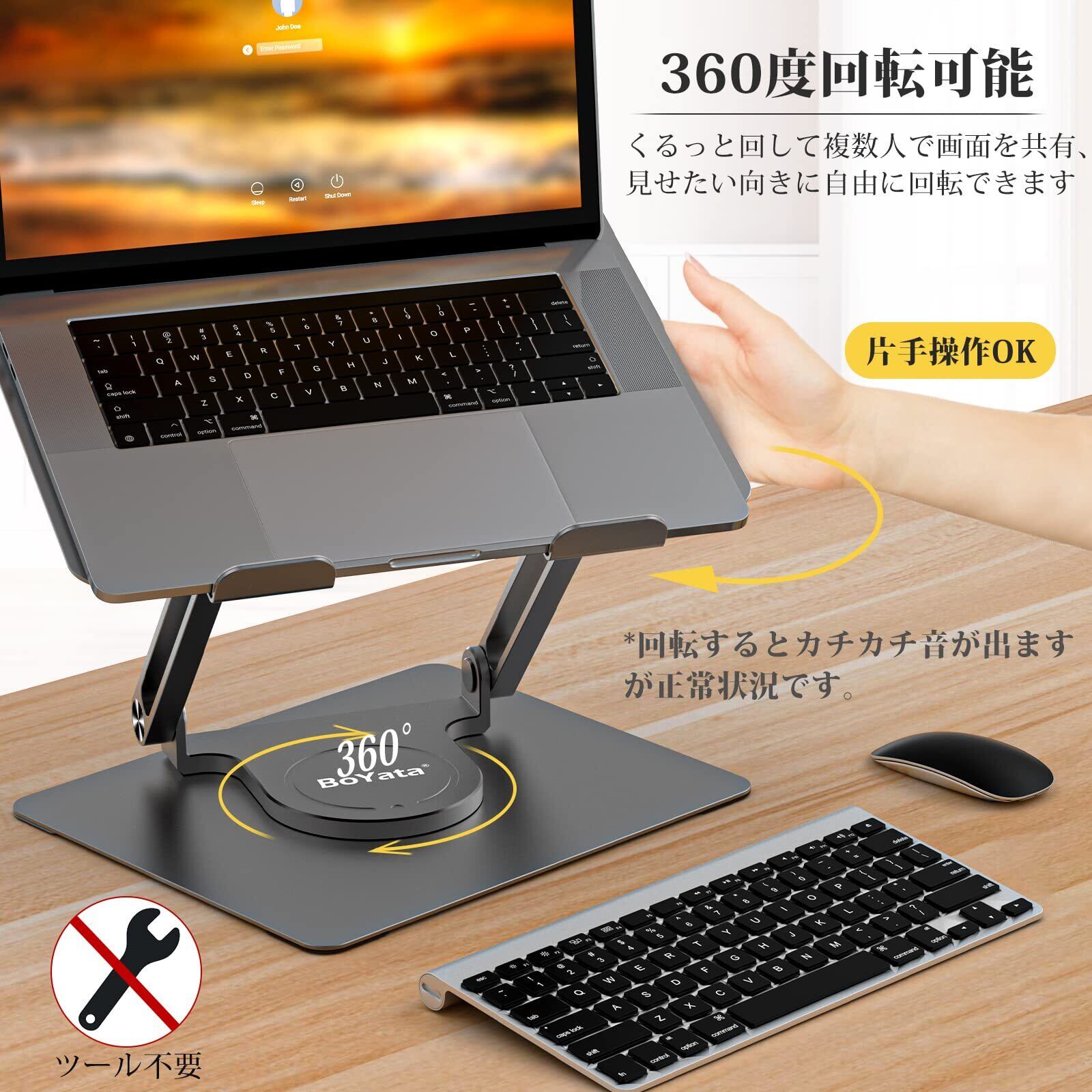【特価商品】BoYata ノートパソコンスタンド 360回転式 PCスタンド タブレットスタンド 教卓スタンド 角度/高さ無段階調節 人間工学設計 放熱対策 滑り止め 姿勢改善 腰痛/猫背解消 17インチまでのノートPCやタブレットに対応 プレゼン テレワーク 在宅ワーク (グレー)