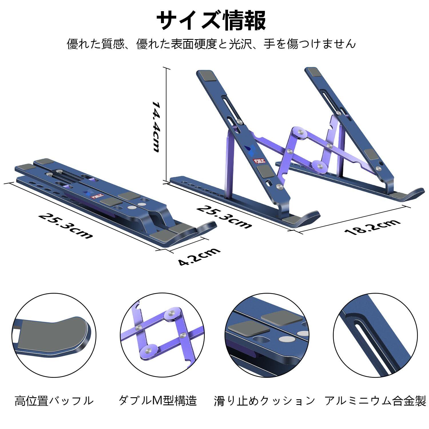 【2022最新】アルミ合金製 ノートパソコンスタンド - iPad スタンド タブレット スタンド 7段階調整 ブルー
