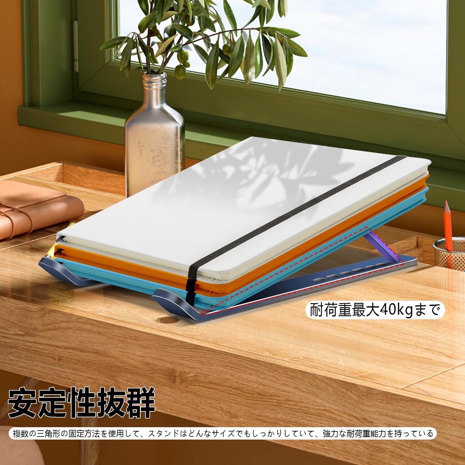 アルミ合金製 ノートパソコンスタンド - iPad スタンド タブレット スタンド 7段階調整 ブルー