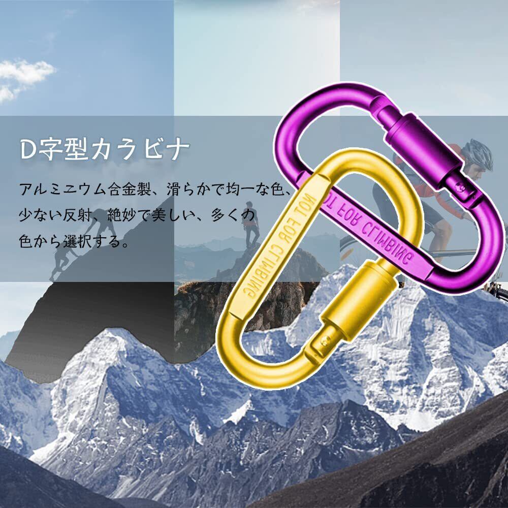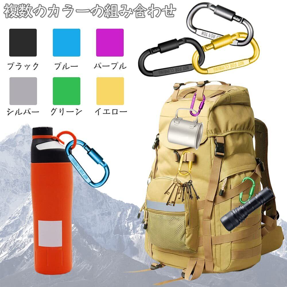 仕様:D字型カラビナ6個セット 素材:アルミニウム合金 カラー:ブラック、ブルー、パープル、シルバー、グリーン、イエロー 表面処理:酸化プロセス 形状:ロック付きD型 。