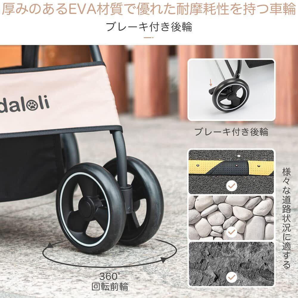 Pandaloli ペットカート ベビーカー 犬 バギー:小型犬 中型犬 猫 多頭 カート 4輪 軽量コンパクト 飛び出し防止リード2本付き 前輪360°回転 後輪ブレーキ付き 折りたたみ 組み立て簡単 耐荷重20Kg ベージュ色
