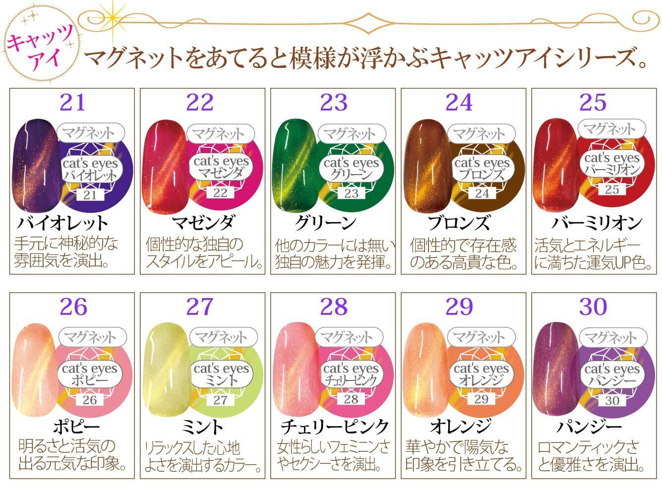 このセットには、鮮やかなカラージェルが30色含まれており、ラメやキャッツアイの効果を簡単に取り入れることができます。思いつく限りの色を組み合わせて、あなただけのオリジナルデザインを楽しんでください!!
