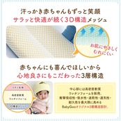 ■汗っかき赤ちゃんもずっと笑顔。サラッと快適が続く3D構造メッシュ。 独自開発の3D構造メッシュで熱がこもらず抜群の通気性、空気が通る高密度の縦繊維、心地よい柔らかさをプラスするクッション性、で汗っかき赤ちゃんもずっと笑顔でいられます。