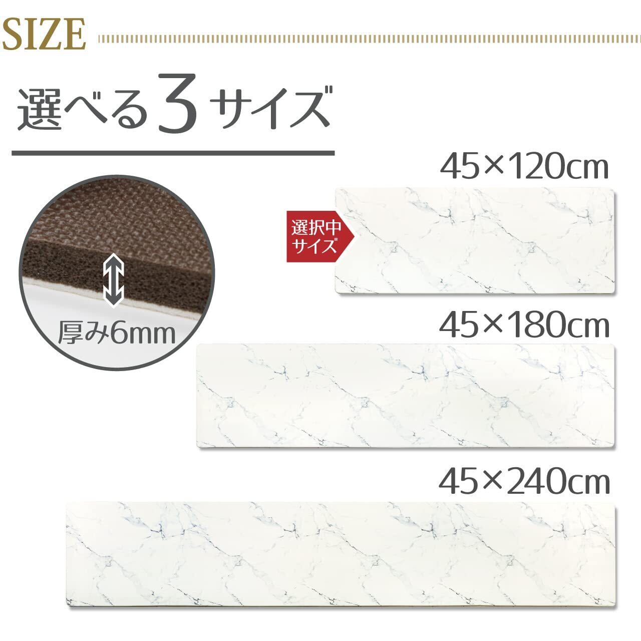 【新春セール】ヨコズナクリエーション 拭けるキッチンマット ビニール製 抗菌防臭 防カビ 防炎 (大理石, 約45×120cm)