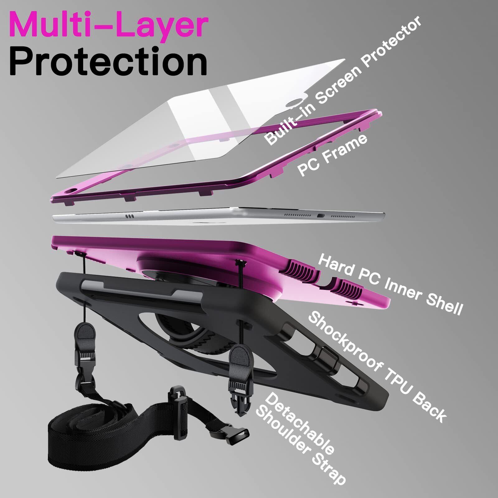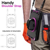 [着脱式 & 調節可能なショルダーストラップ] 自宅、職場、旅行先のどこにでも iPadを便利に持ち運べます。車のシートのヘッドレストの後ろに掛けて、共有して視聴することもできます