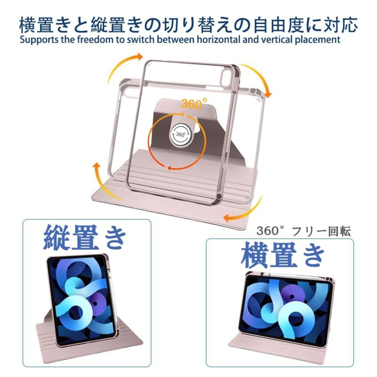 iPad 10世代 ケース 10.9 インチ 2022モデル PUレザー 360度回転式 磁気吸着 iPad 10 世代 カバー 透明カバー 2 in 1 スタンド 調節可能ハンドバンド ペン収納 子供 オンライン教育 iPad 第10世代 10.9 インチ ケース 車載 アウトドア 屋内 軽量 便利 Apple Pencil 収納 耐衝撃 カバー(ピンク)